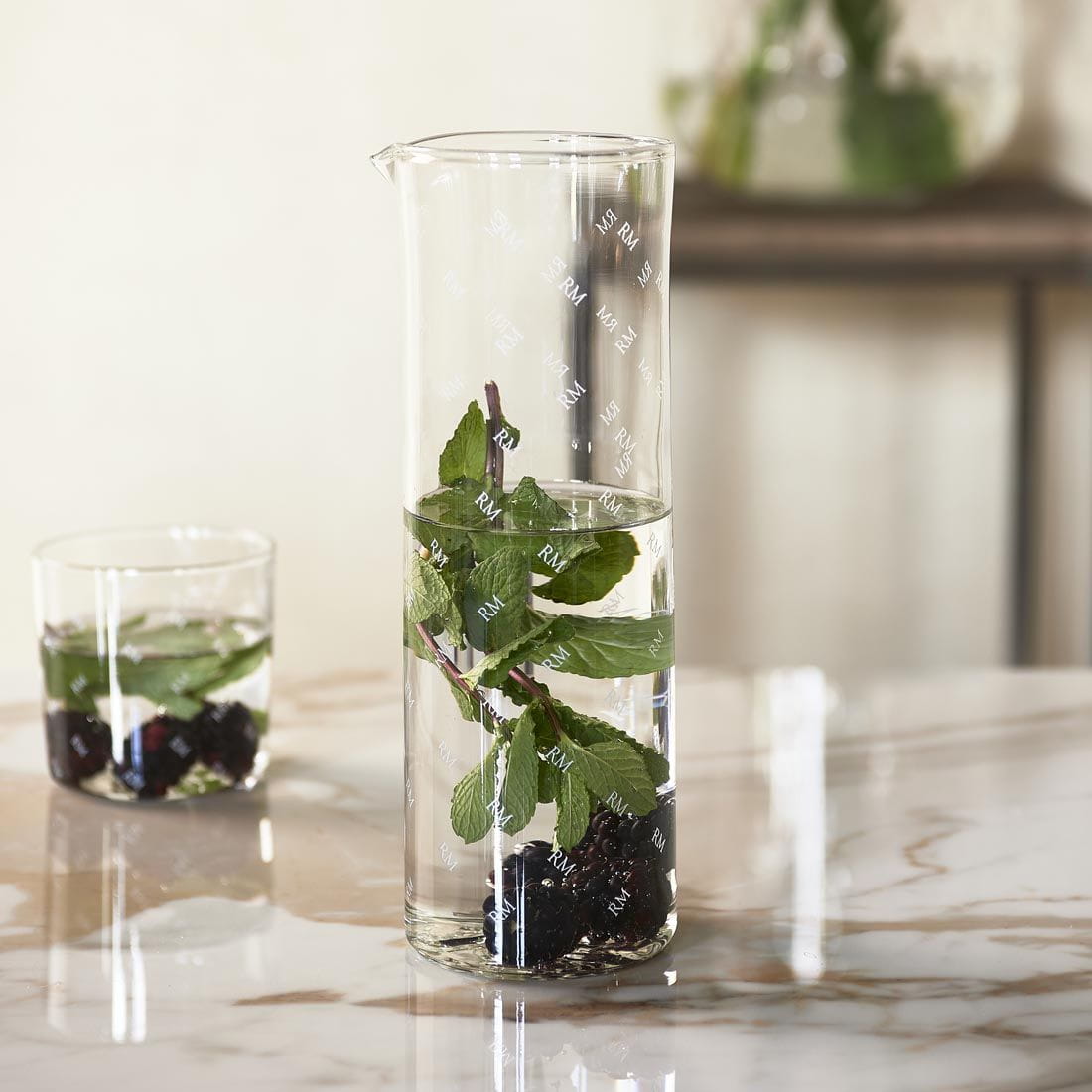 Na szkle znajdują się białe inicjały Rivièra Maison.