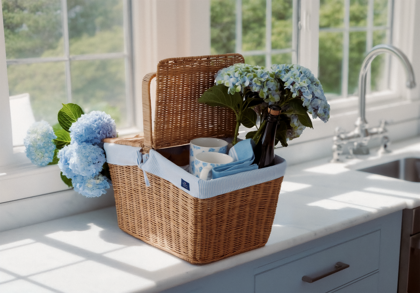 Kosz piknikowy Picnic basket in rattan with liner, blue/white Liner Lexington