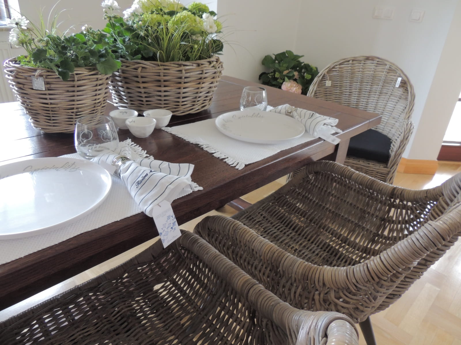 Stół do jadalni wymaga pięknych naturalnych krzeseł, aby uzupełnić całość.