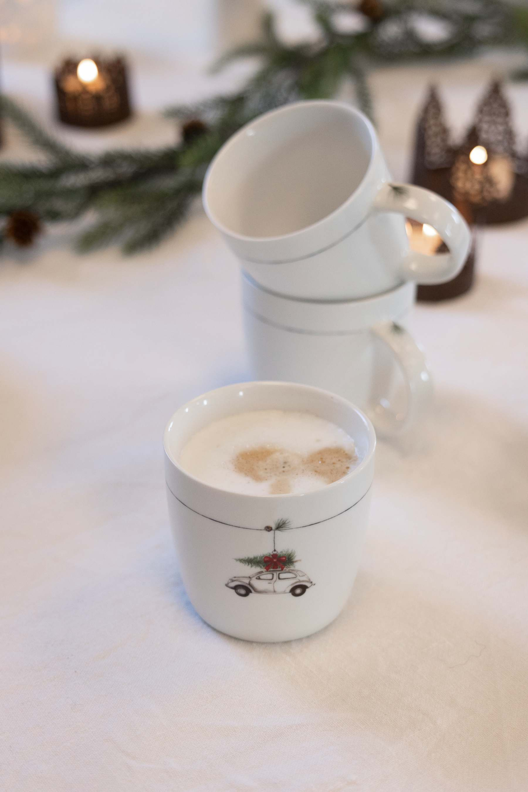 Kubek Sögne Tradisjon z motywem samochodu wiozącego choinkę to pełna uroku propozycja, która od razu wprowadza w świąteczny nastrój.