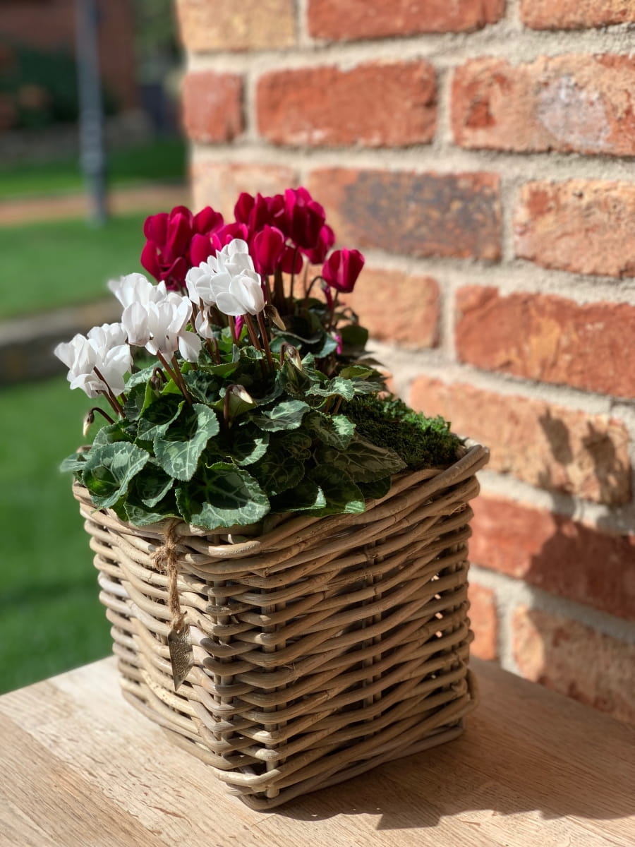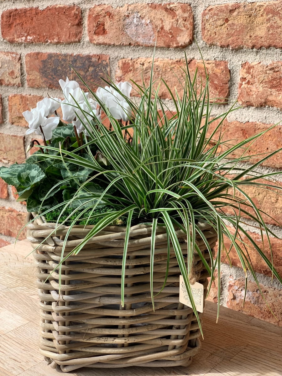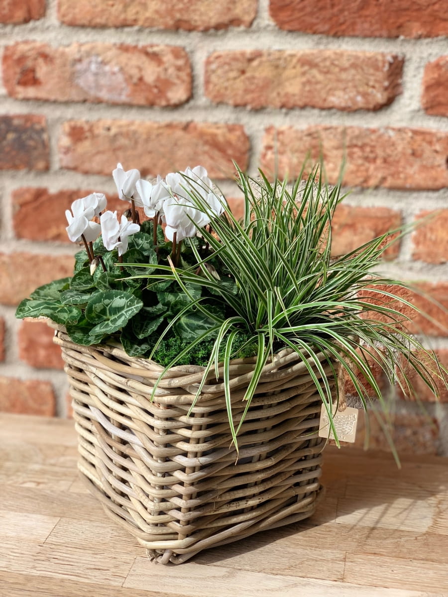Kosz ratanowy, który spełnia formę doniczki, dzięki któremu stworzysz piękną kompozycję sezonową na taras lub balkon.