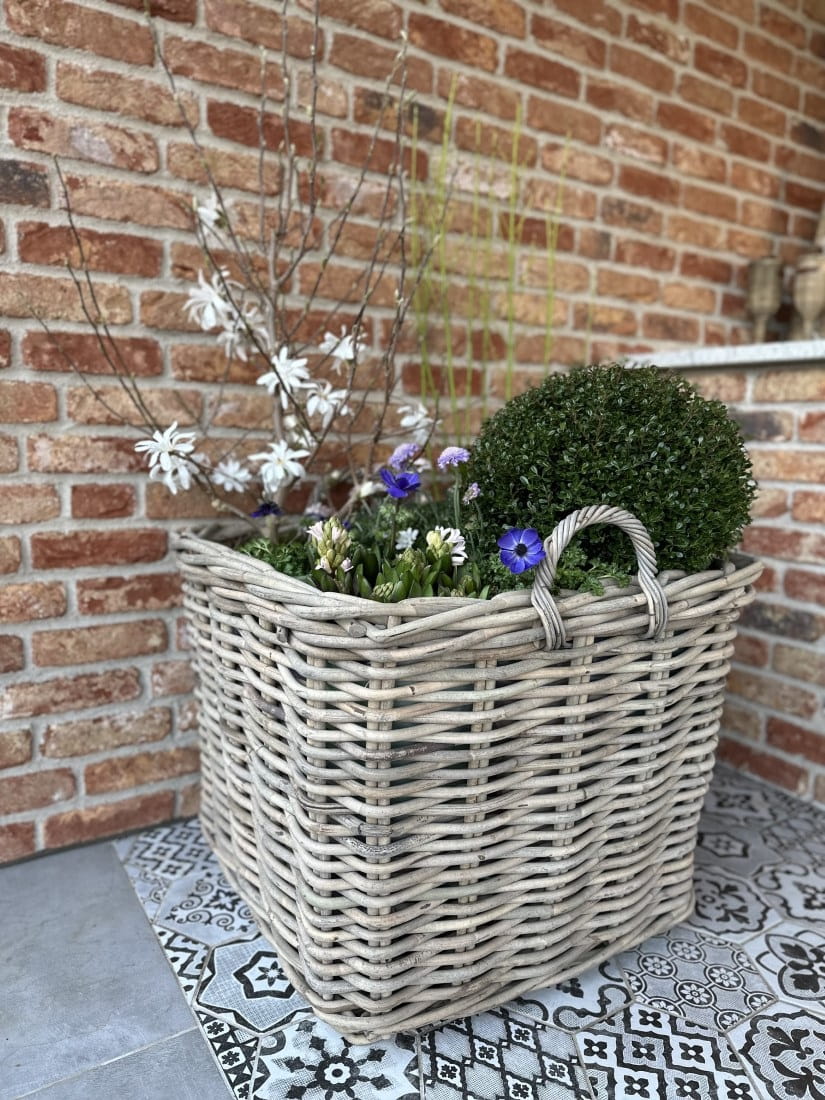 Kwadratowy kosz z grubego ratanu z uchwytami 65x65x55