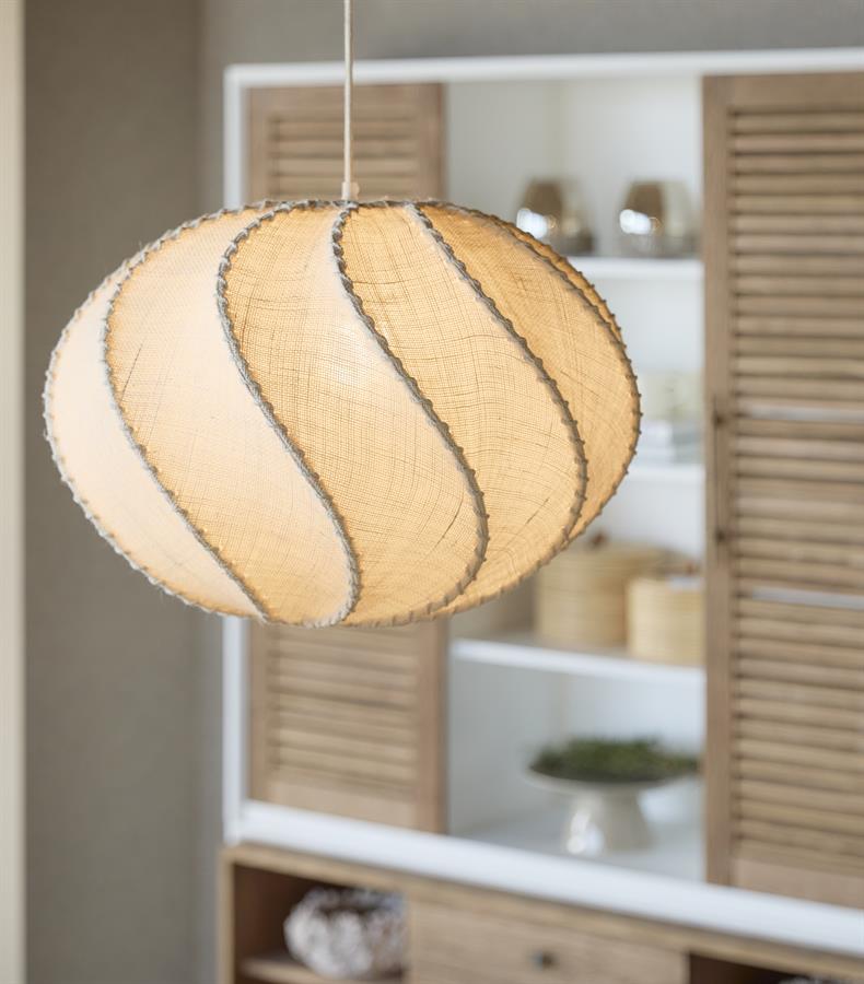 Wisząca lampa Lumea zachwyca miękką, organiczną formą i subtelnym, tekstylnym wykończeniem.