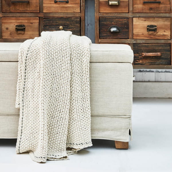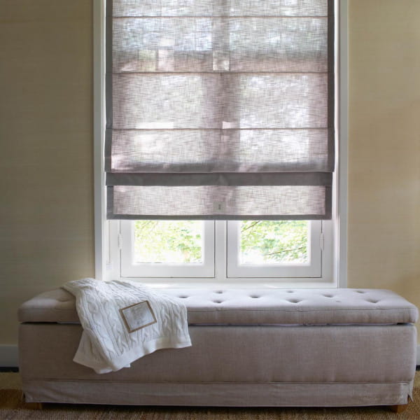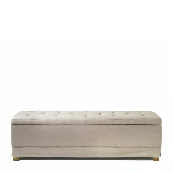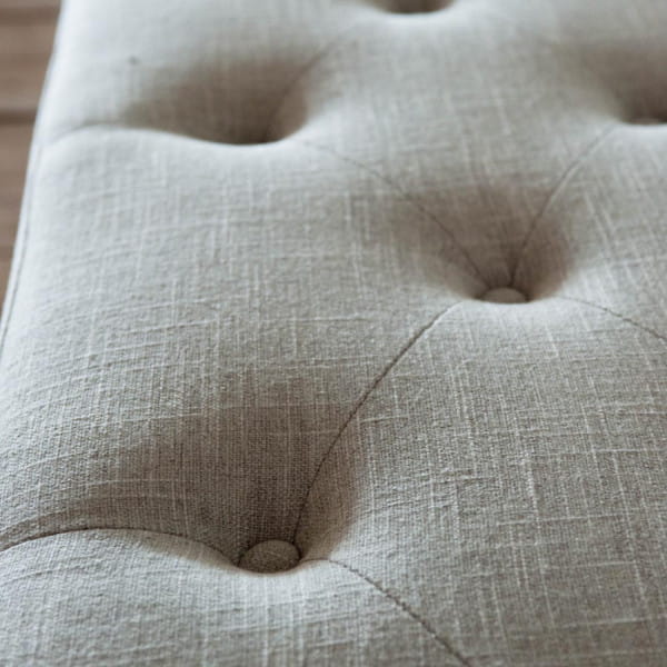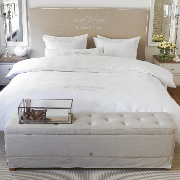 Lniana pikowana ławka fantastycznie prezentuje się na końcu łóżka.