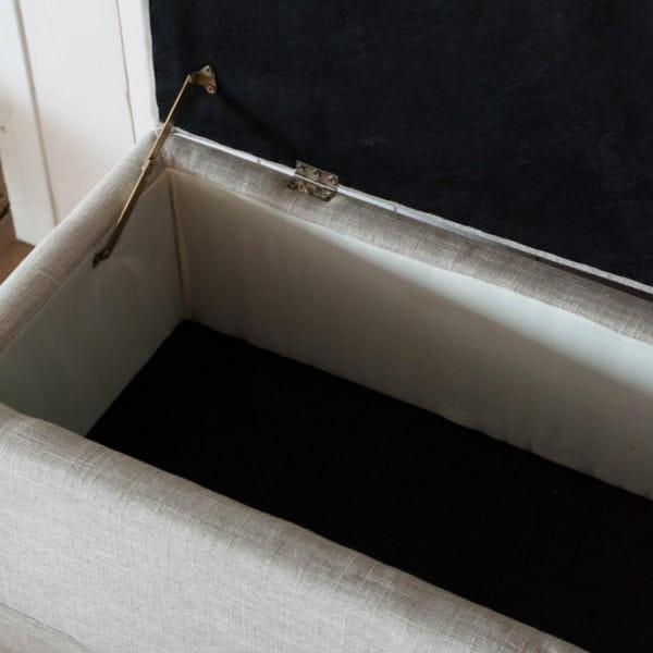 Pokrywa otwiera się, ukazując mnóstwo miejsca do przechowywania pościeli, czy innej bielizny. Kolejną propozycja do zaaranżowania tej ławki jest