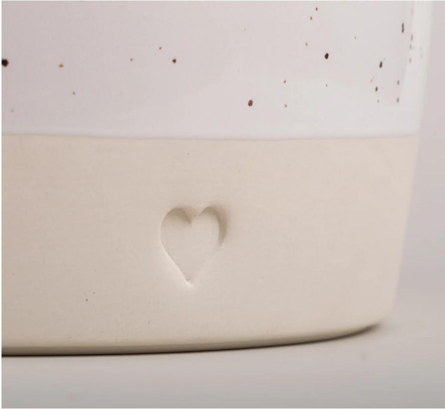 Ręcznie formowana i szkliwiona w małej portugalskiej pracowni, dzięki czemu każdy egzemplarz jest unikatowy.