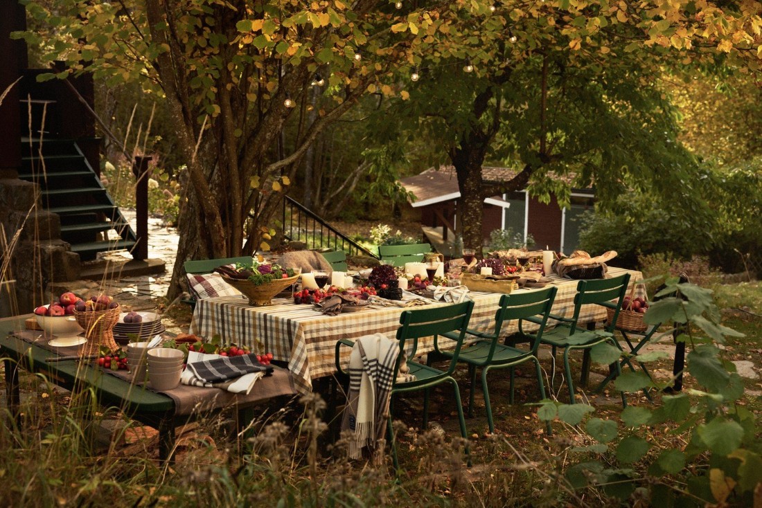 - Wysokiej jakości obrus w sezonowy wzór w oliwkowo-biało-kamienną kratkę