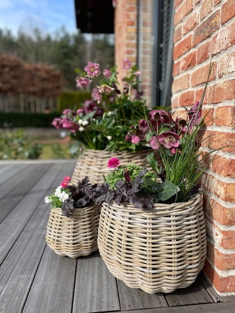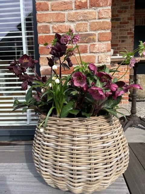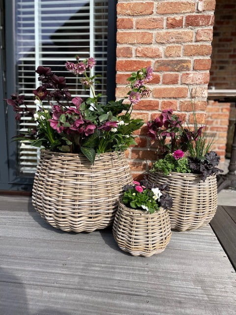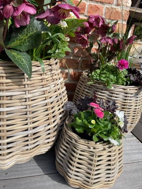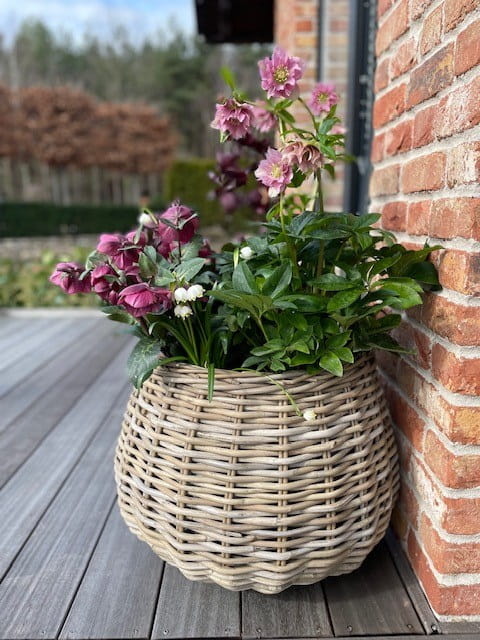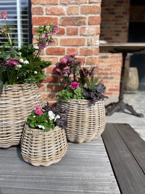 Kosz ratanowy, który spełnia formę doniczki, dzięki któremu stworzysz piękną kompozycję sezonową na stół, komodę, taras.