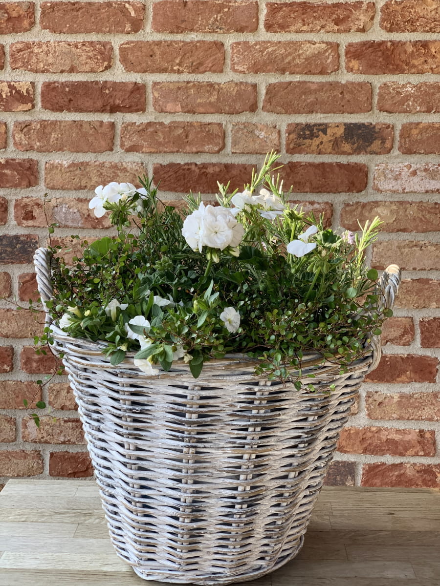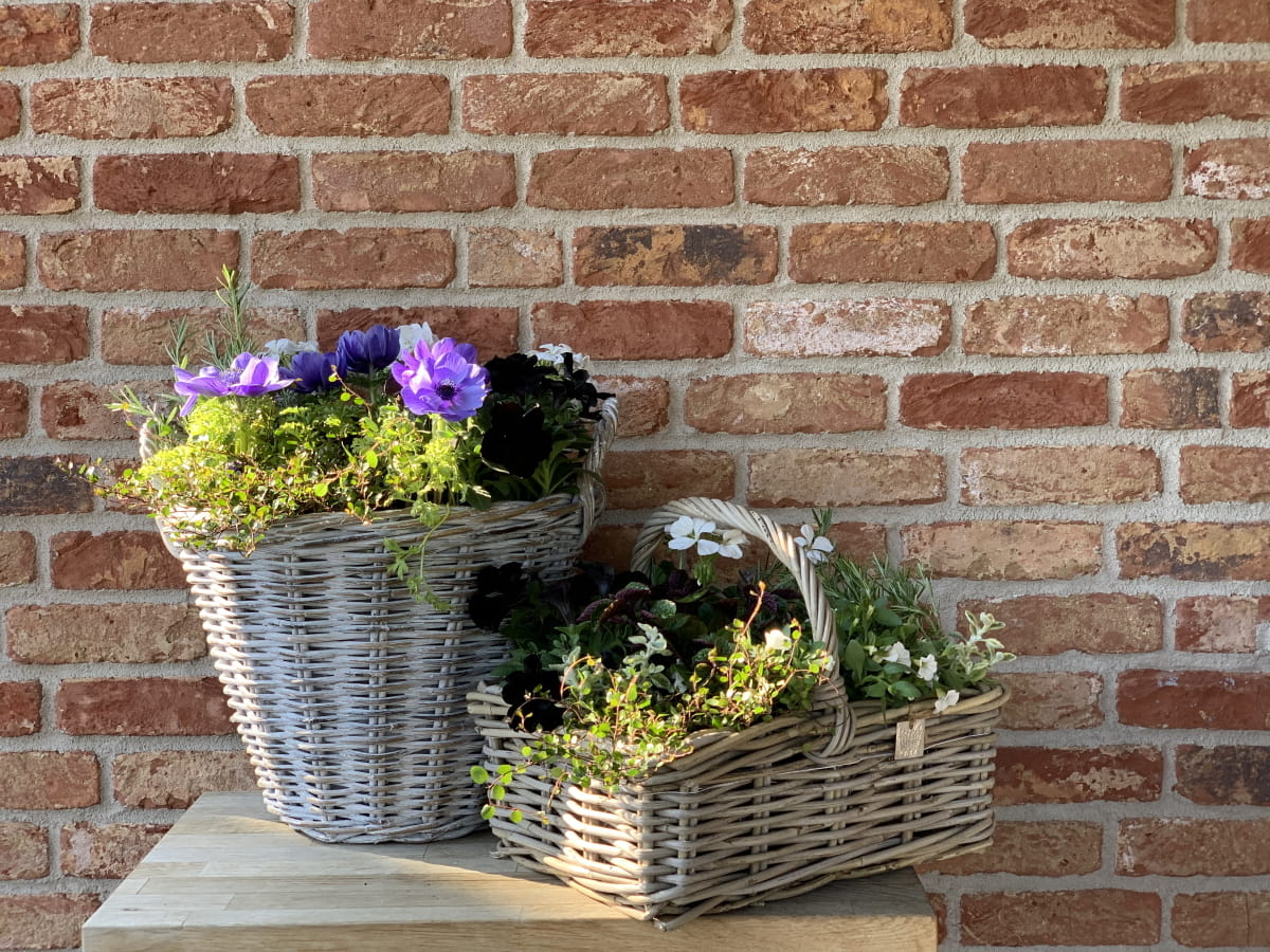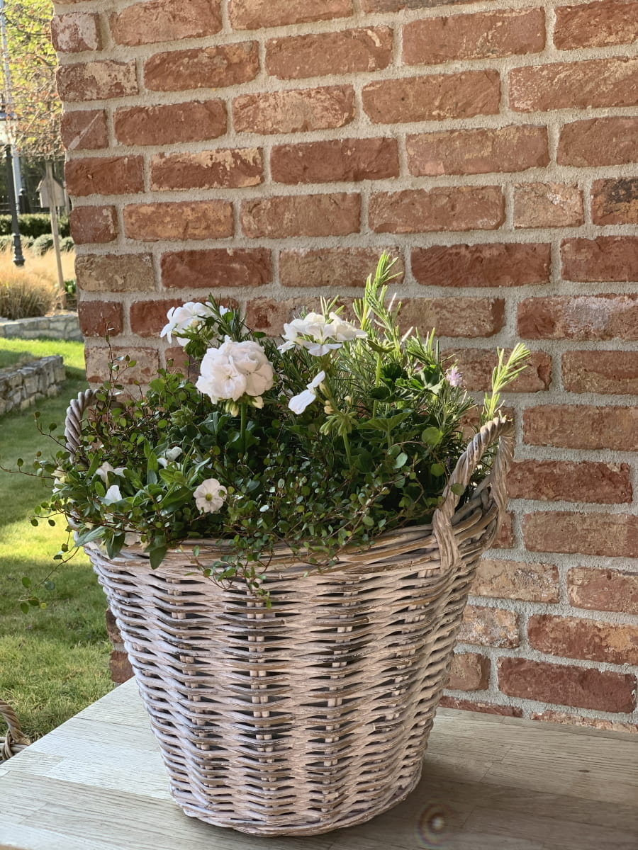 Kosz ratanowy, który spełnia formę doniczki, dzięki któremu stworzysz piękną kompozycję sezonową na taras lub balkon.