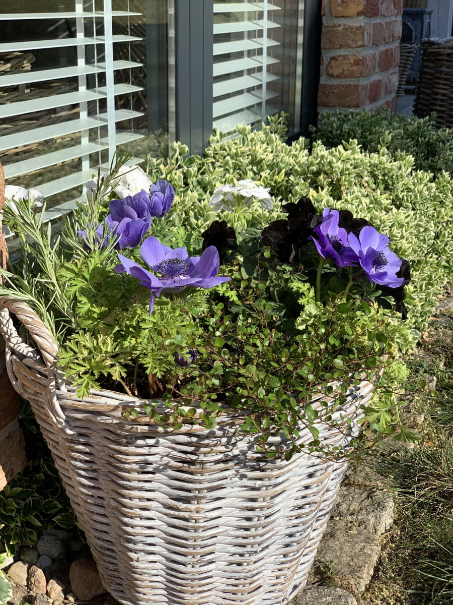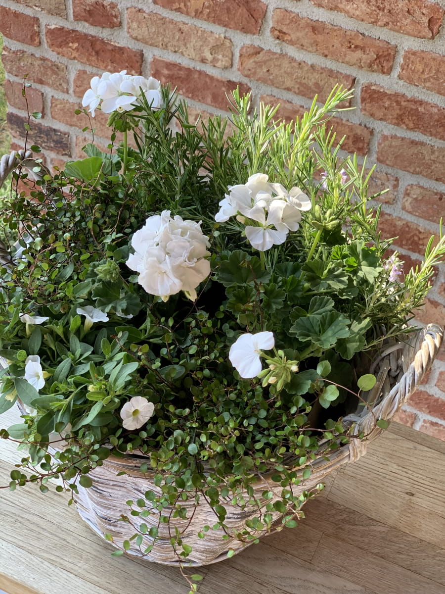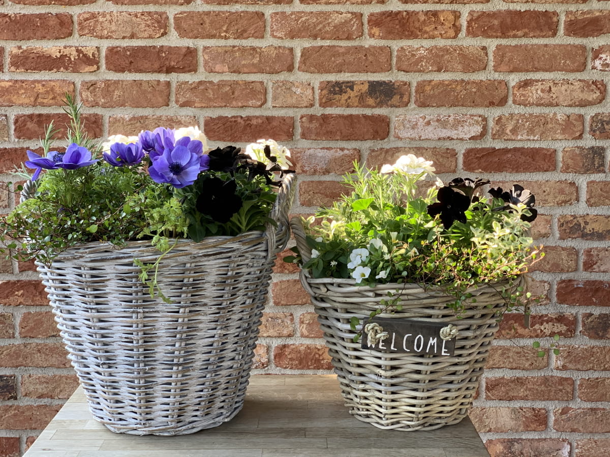 Kosz ratanowy, który spełnia formę doniczki, dzięki któremu stworzysz piękną kompozycję sezonową na taras lub balkon.