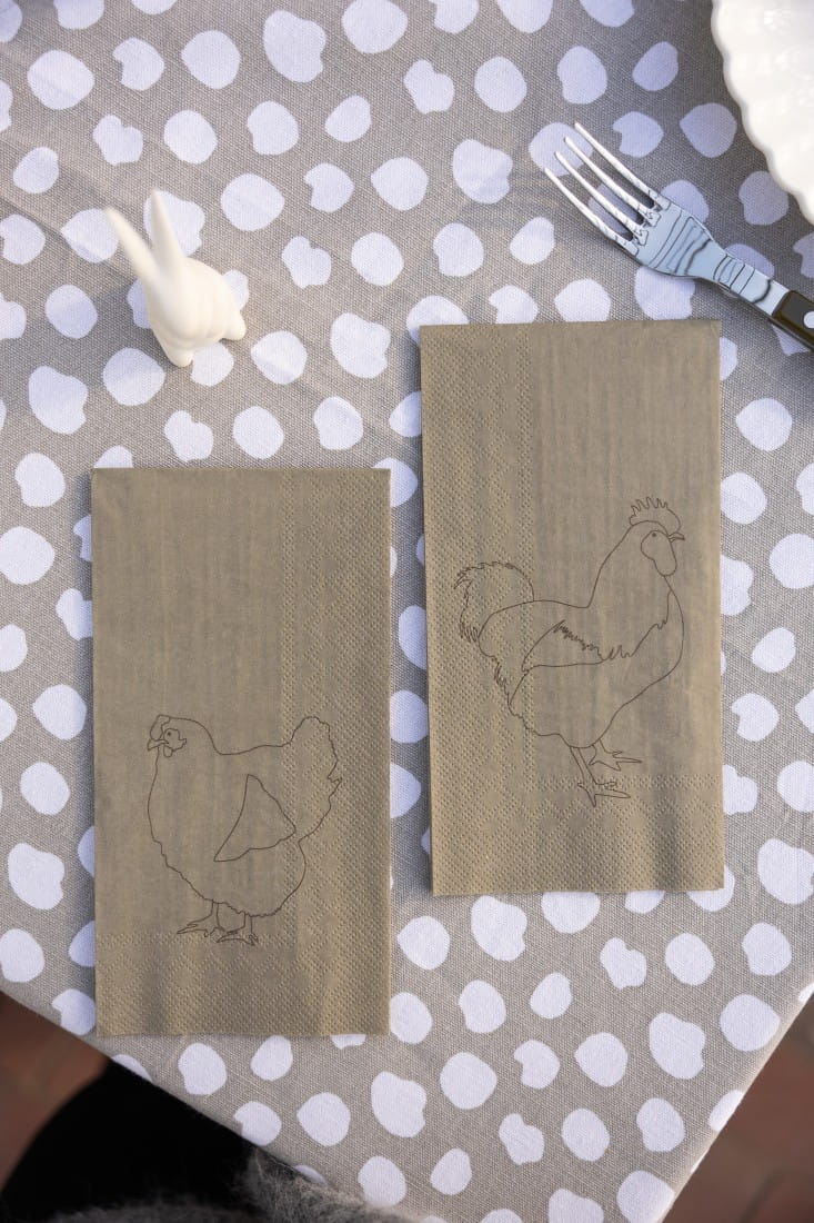Papierowe serwetki z dwoma różnymi wzorami inspirowanymi Wielkanocą to stylowy i elegancki dodatek do świątecznego stołu.
