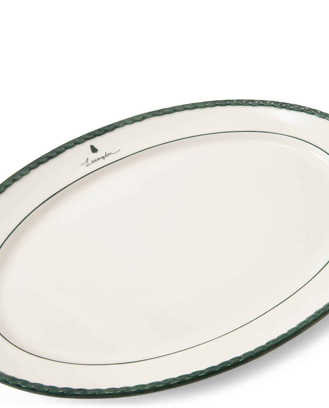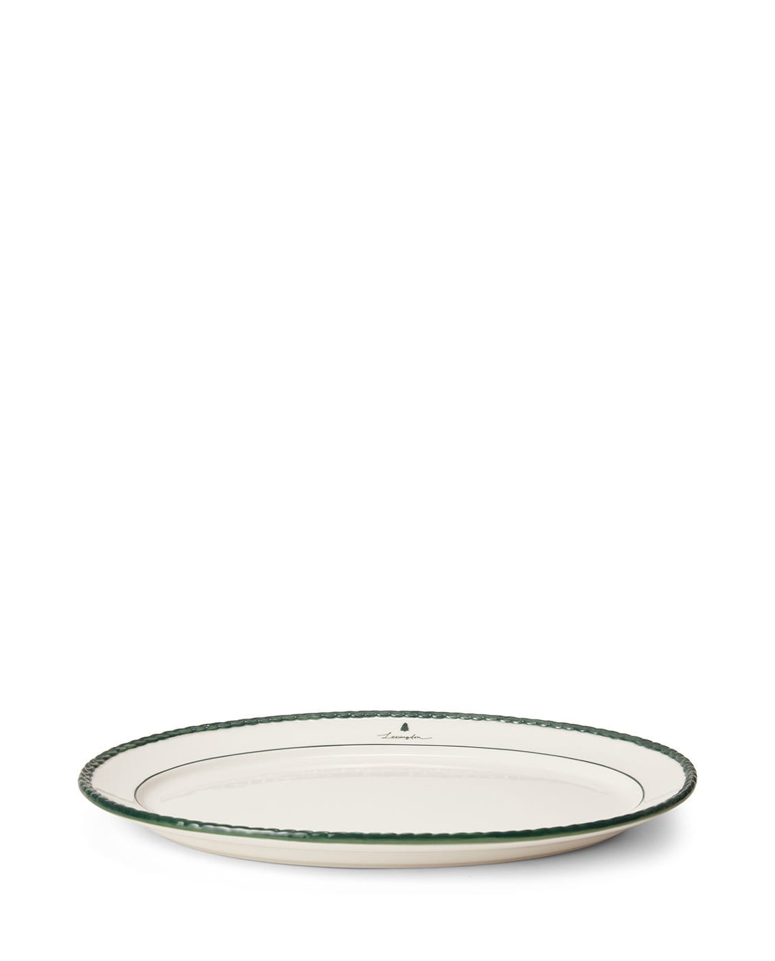 - Talerz do serwowania w nowym designie z małą naklejką z logo na krawędzi. Pleciony detal na górze, ręcznie malowany na zielono. Można go używać na stole lub w dowolnym miejscu jako dekoracji świątecznej.