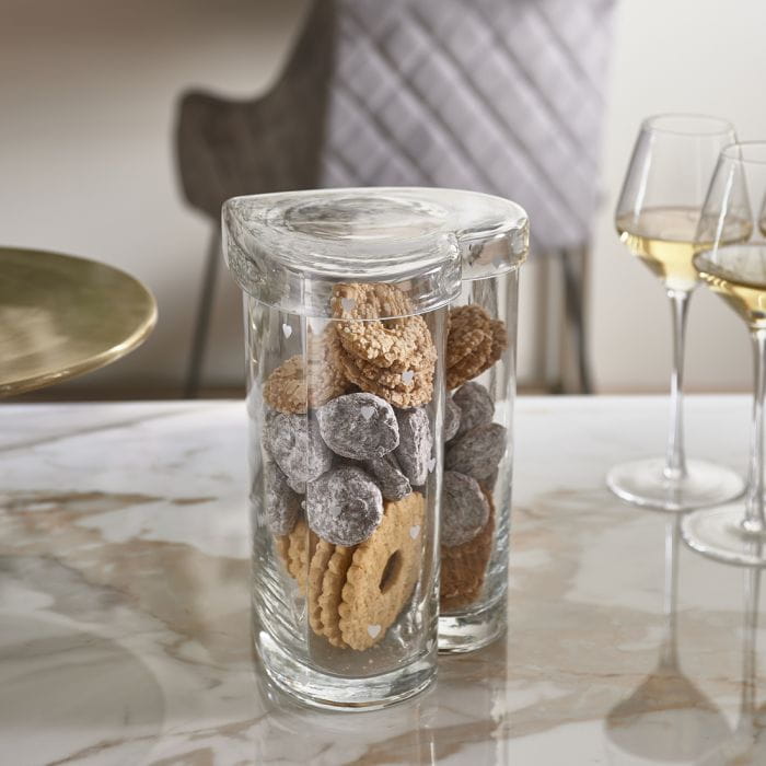 „Happy Heart Storage Jar” to wspaniały duży szklany słój w kształcie serca, z pokrywką w kształcie
