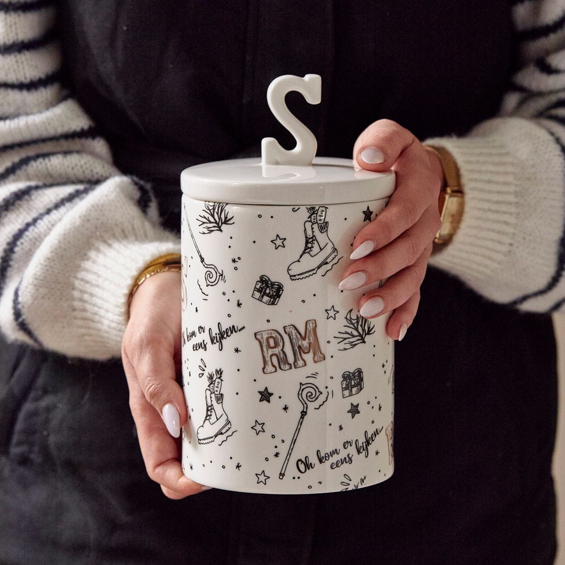 Przechowuj wszystkie smakołyki w tym pięknie wykończonym porcelanowym słoju.