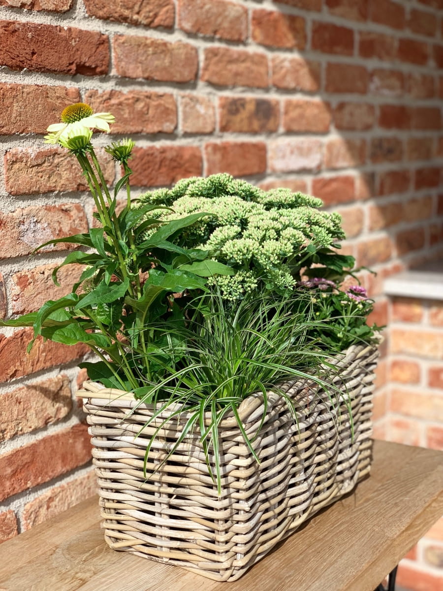 Korytko rattanowe nadaje się do nasadzeń na parapety tworząc niepowtarzalną aranżację zdobiącą okno.