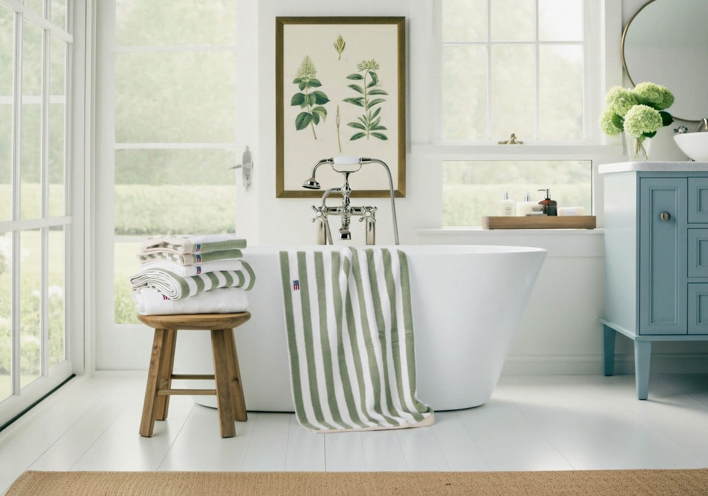Ręcznik Block striped towel, vintage green/white/moonbeam 100x150 Lexington