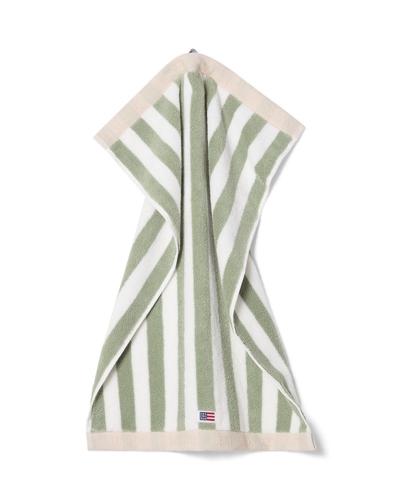 Klasyczny ręcznik w paski w kolorze vintage green, white i moonbeam wnosi świeży, ponadczasowy wygląd do Twojej łazienki. Wykonany ze 100% wysokiej jakości bawełny typu ring-spun o gramaturze 600 g, ręcznik jest miękki i bardzo chłonny. Wyrafinowany wzór w paski charakteryzuje się zagiętym kontrastowym brzegiem z żakardowym logo u góry i u dołu, a tkane logo Lexington u dołu z przodu dodaje autentycznego akcentu. Certyfikat Oeko-Tex dla Twojego spokoju ducha.