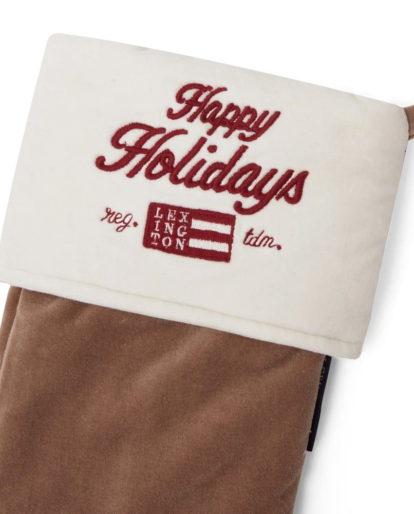 Skarpeta na prezenty Happy Holidays Org Cotton Velvet Stocking Beige Stocking Lexington