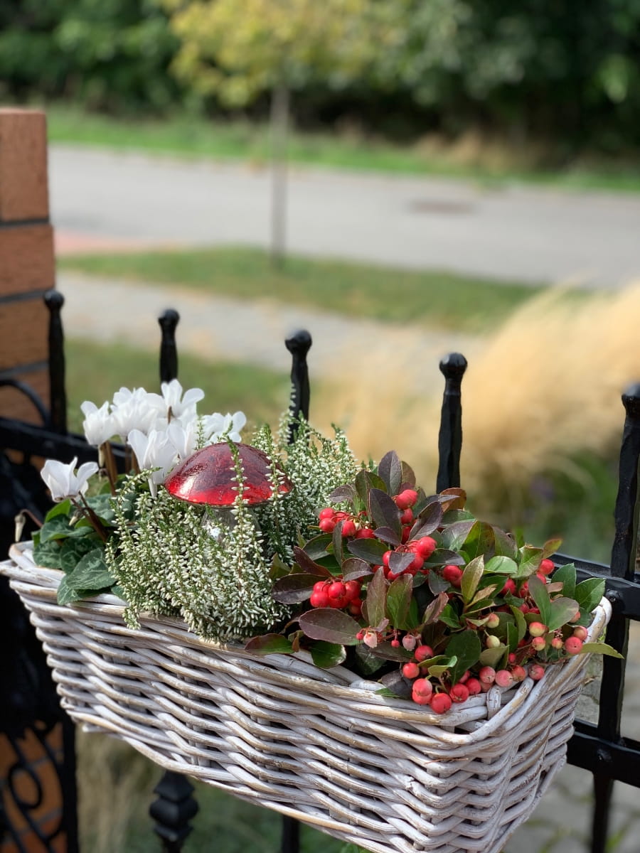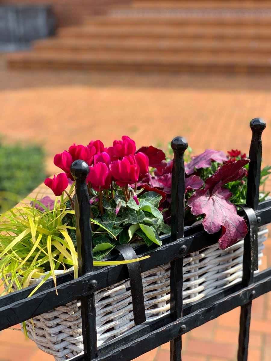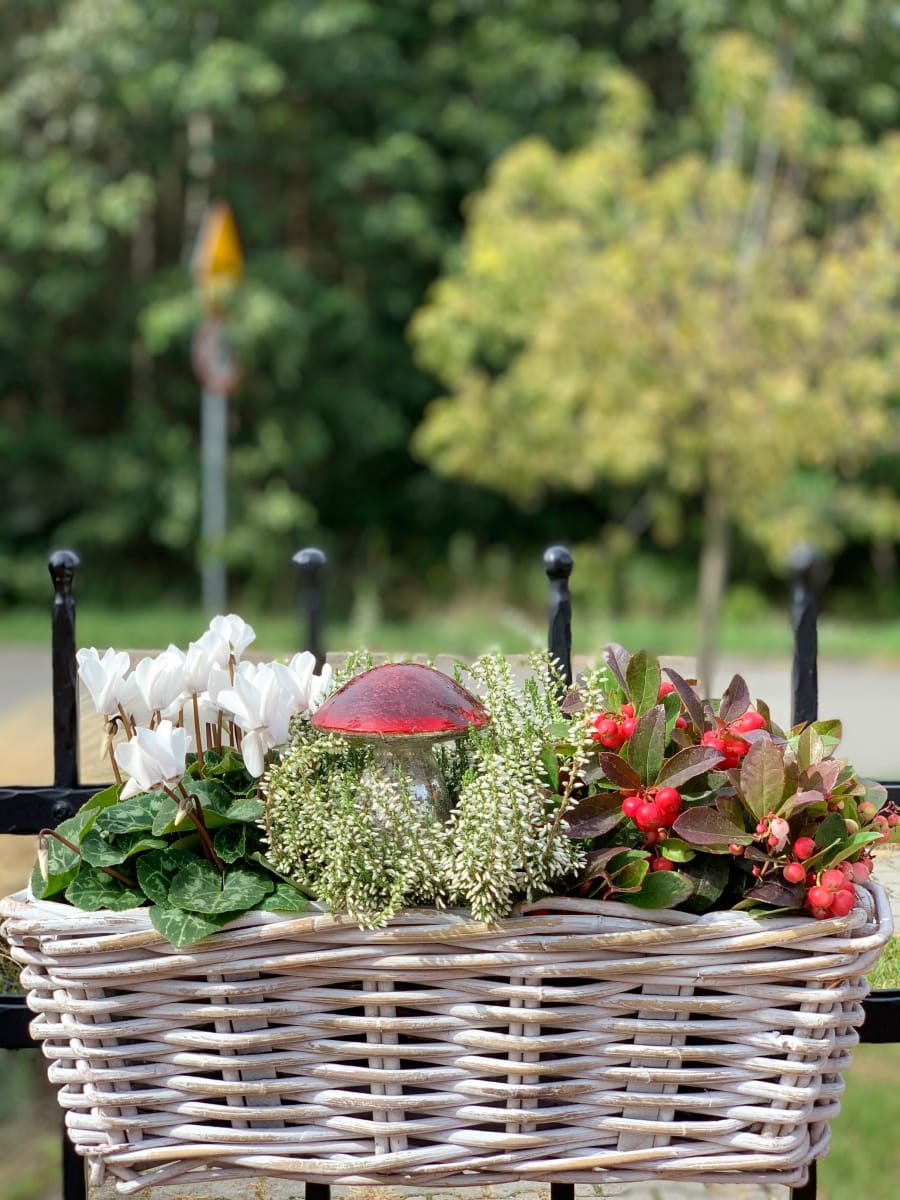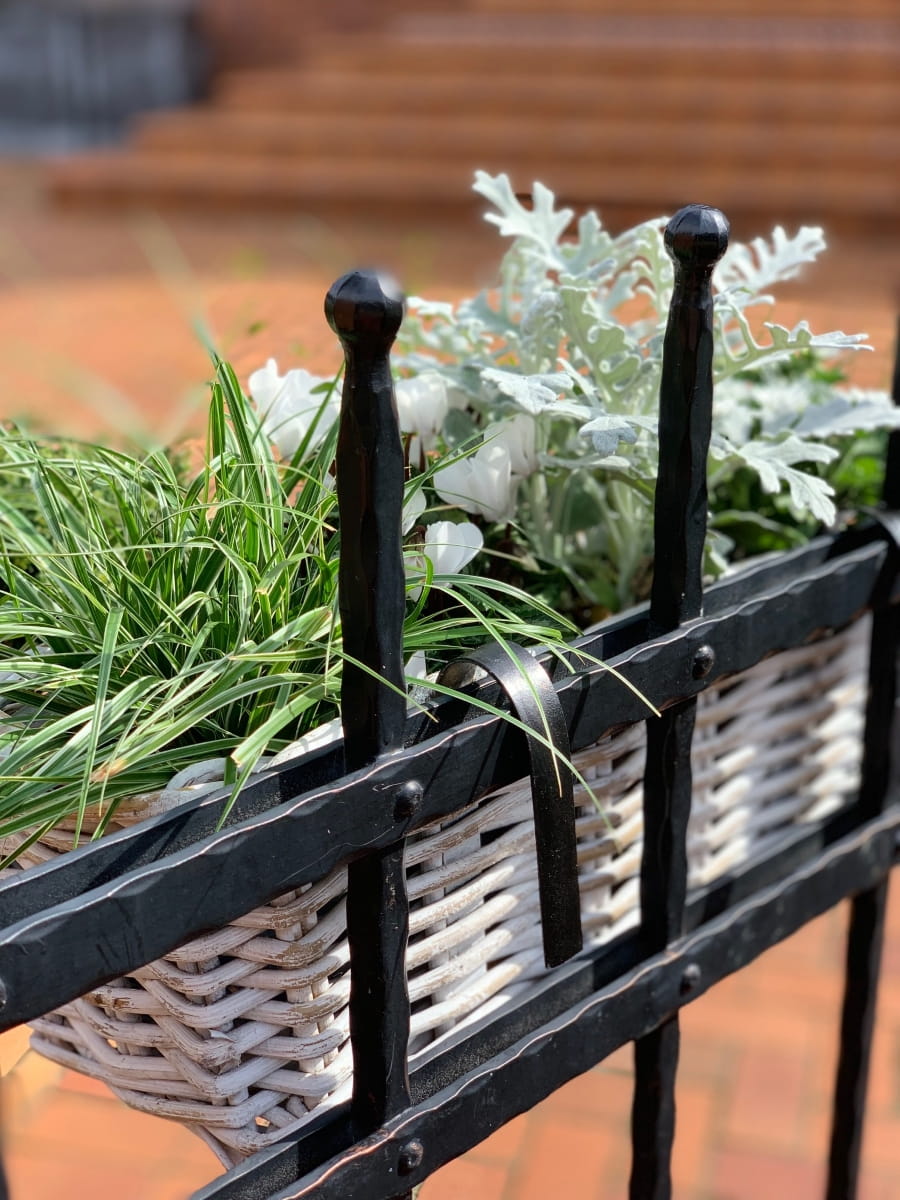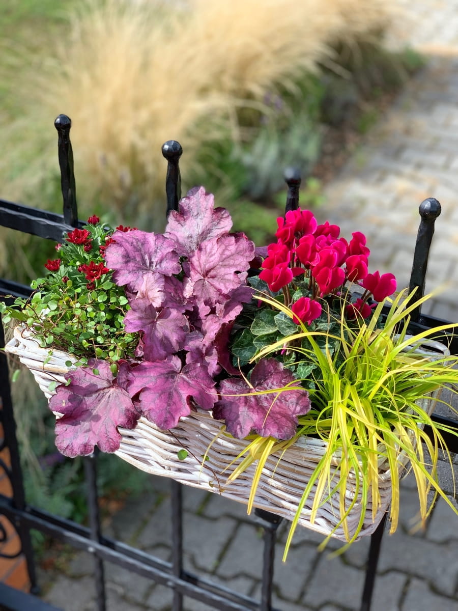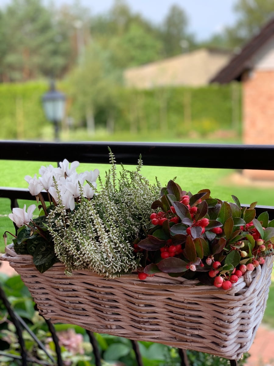 Nasadzenia w tak pięknym korytku rattanowym ręcznie wyplatanym idealnie wyeksponują rośliny sezonowe lub zioła na balkonie,