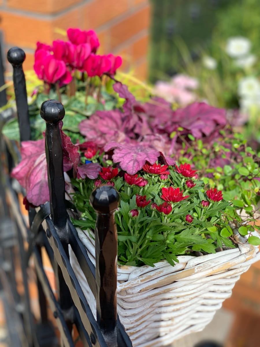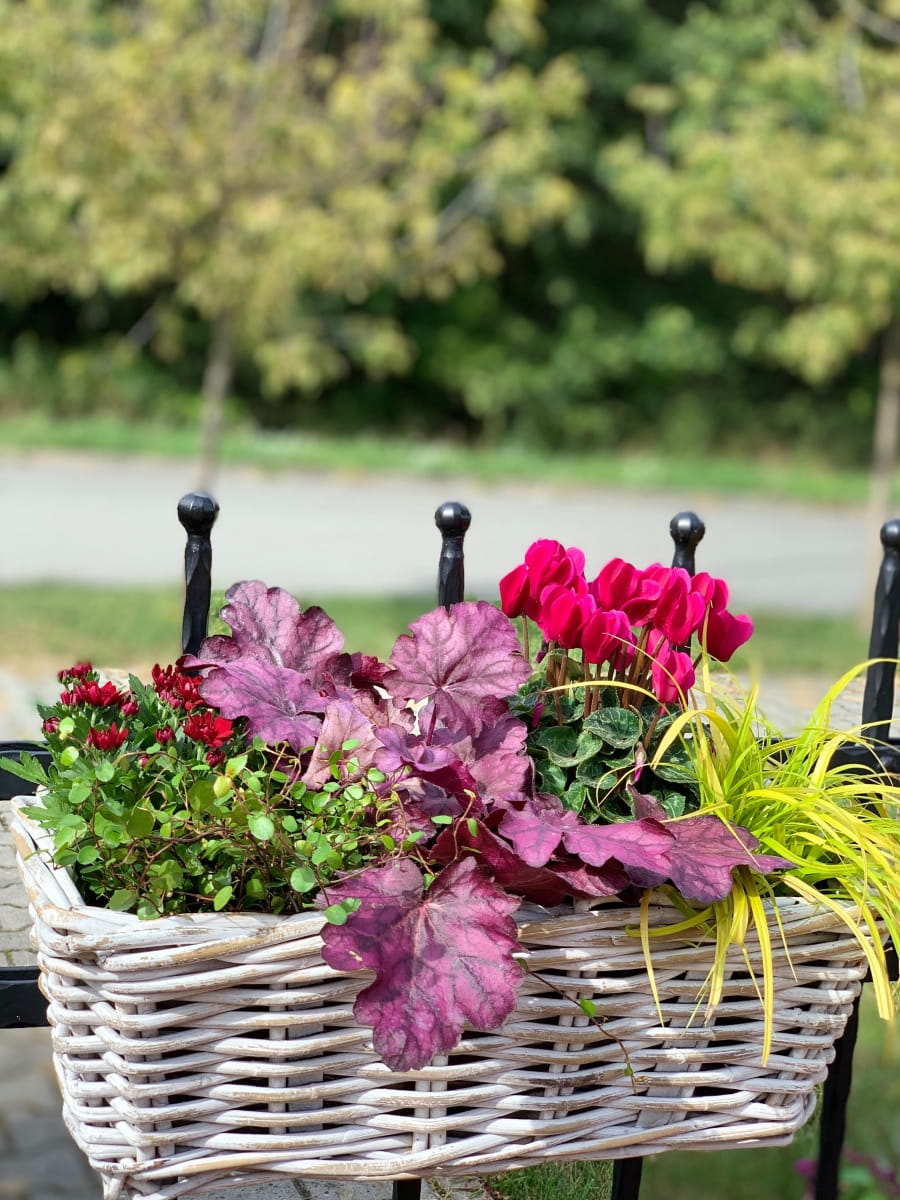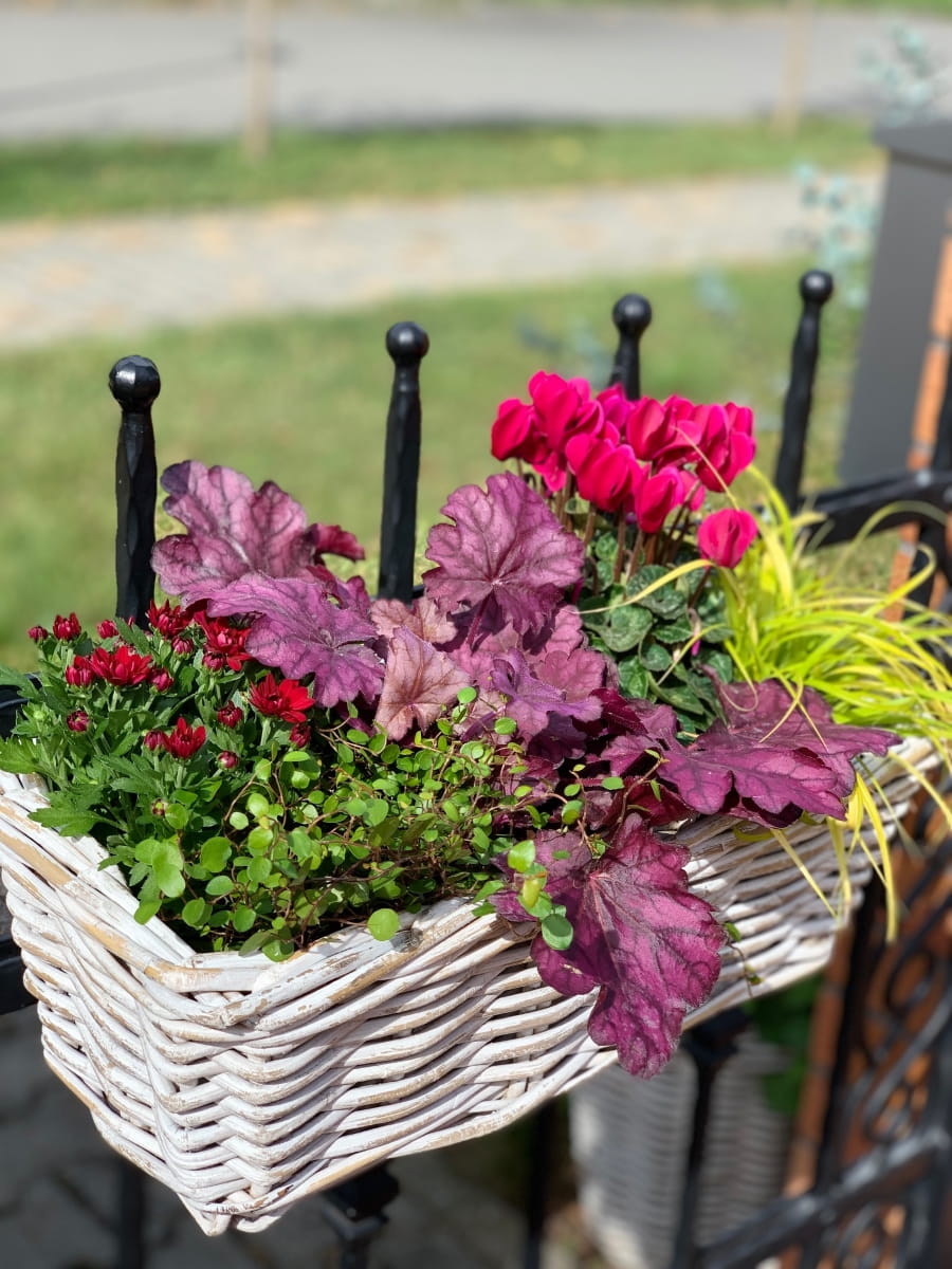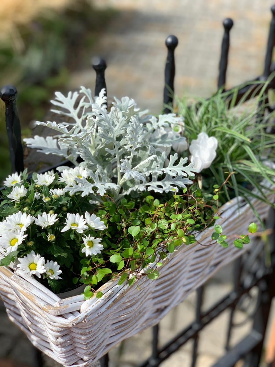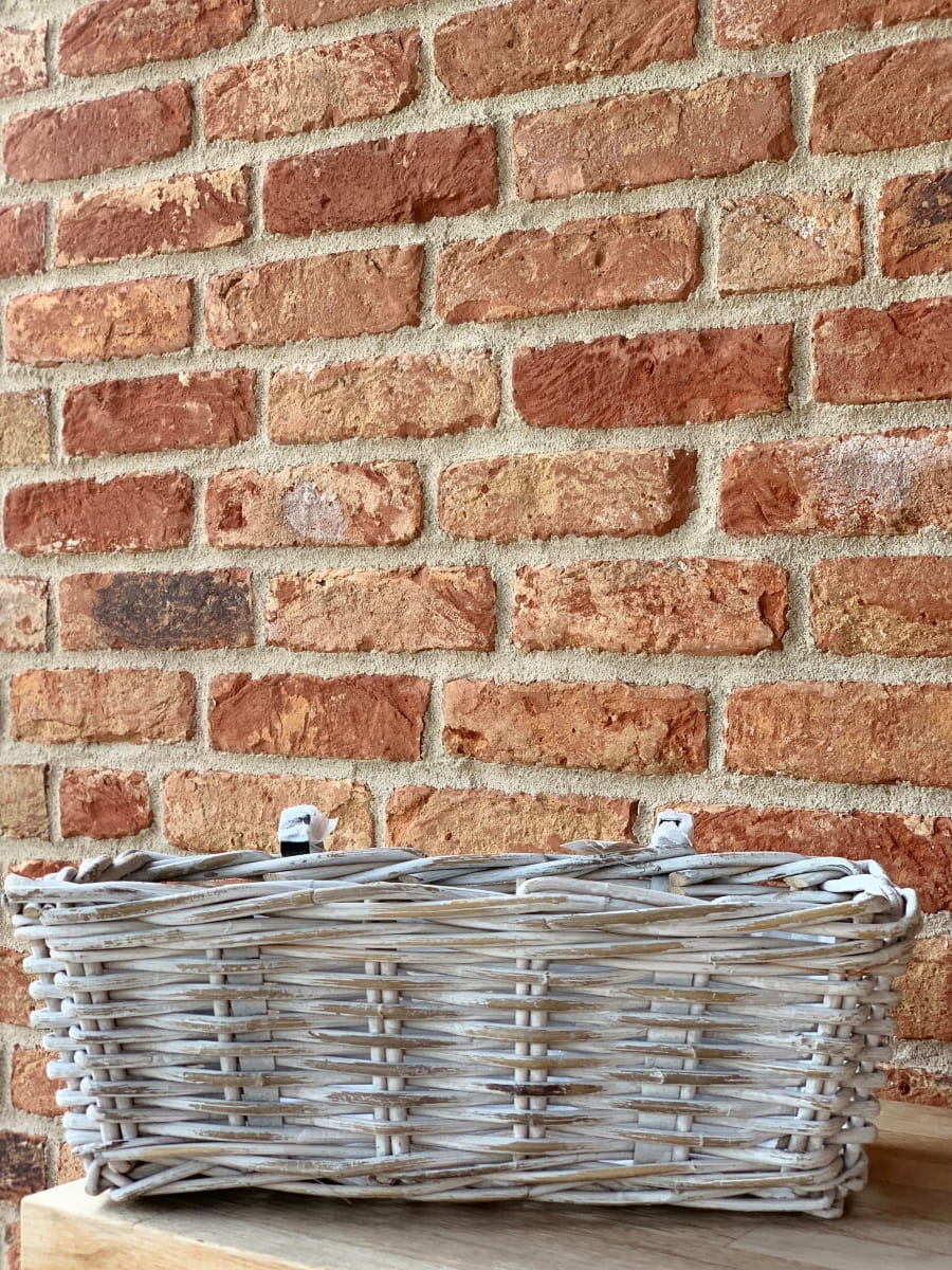 Nasadzenia w tak pięknym korytku rattanowym ręcznie wyplatanym idealnie wyeksponują rośliny sezonowe lub zioła na balkonie,
