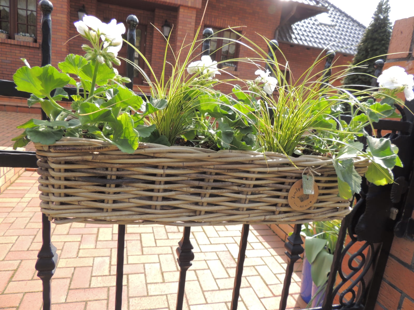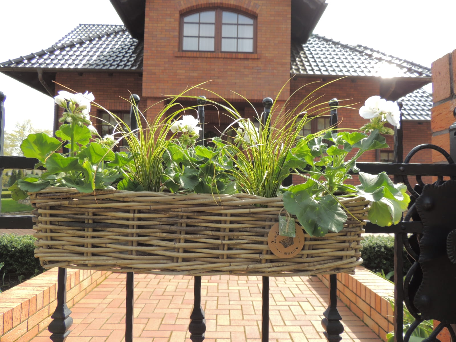 Jeśli chcesz rozpocząć przygodę z uprawą roślin, skrzynka balkonowa z plecionką z naturalnego rattanu to świetny wybór. Ma ona długość 46 cm i jest stosunkowo lekka, a dzięki temu, że można zaczepić ją o balustradę, poręcz lub barierkę, nie zajmie wiele miejsca. Wewnątrz zmieści się kilka doniczek z kwiatami dekoracyjnymi. Z jej pomocą udekorujesz parapet lub altankę, a także zagospodarujesz przestrzeń wokół domku letniskowego na działce rekreacyjnej.