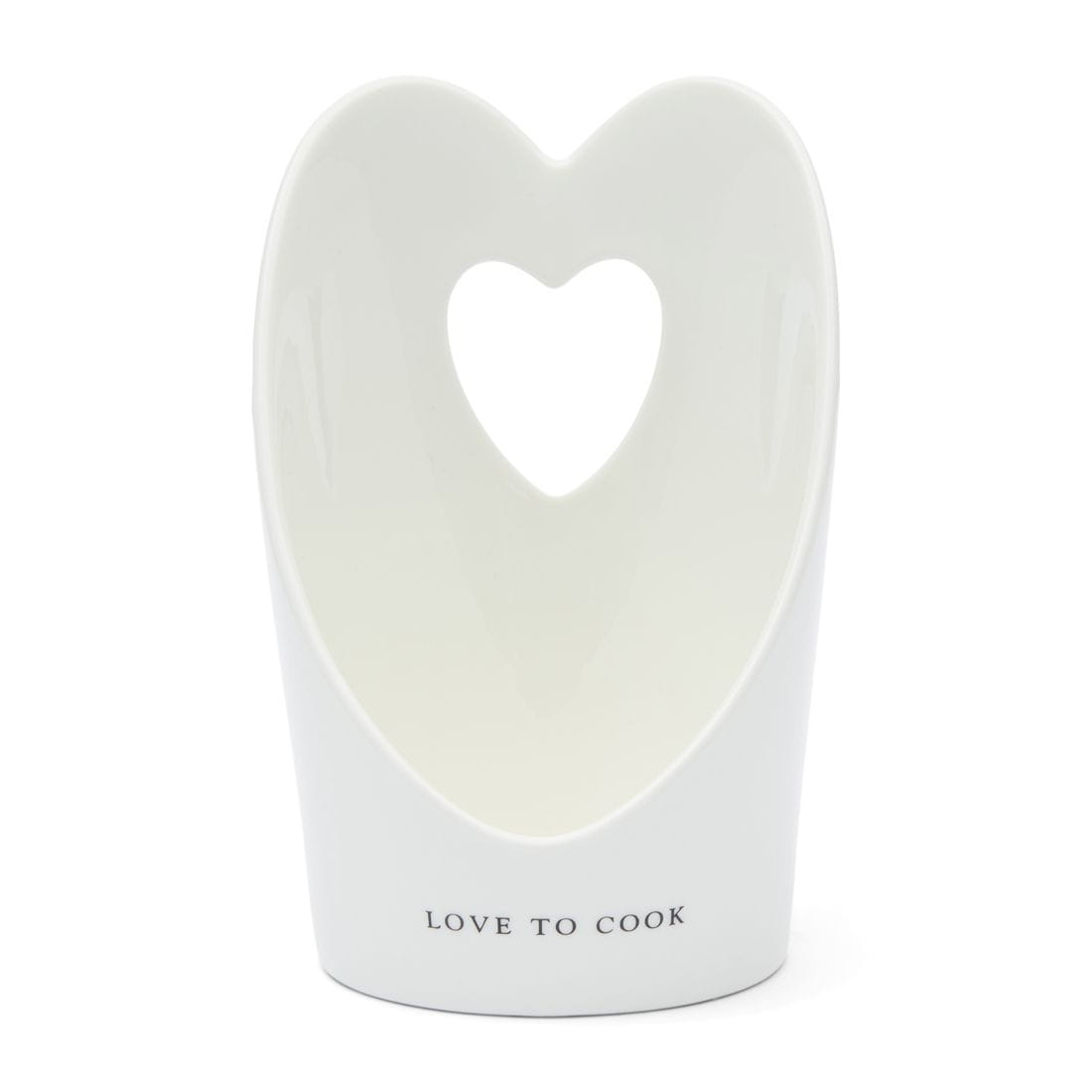 Dzięki temu stojakowi na łyżki z kolekcji " With Love" brudne łyżki na blacie należą już do przeszłości. Uchwyt w kształcie serca wykonany z ręcznie z porcelany. Wycięcie w kształcie serca zapewnia dodatkowy, zabawny detal. Ta seria oferuje różnorodne akcesoria kuchenne.