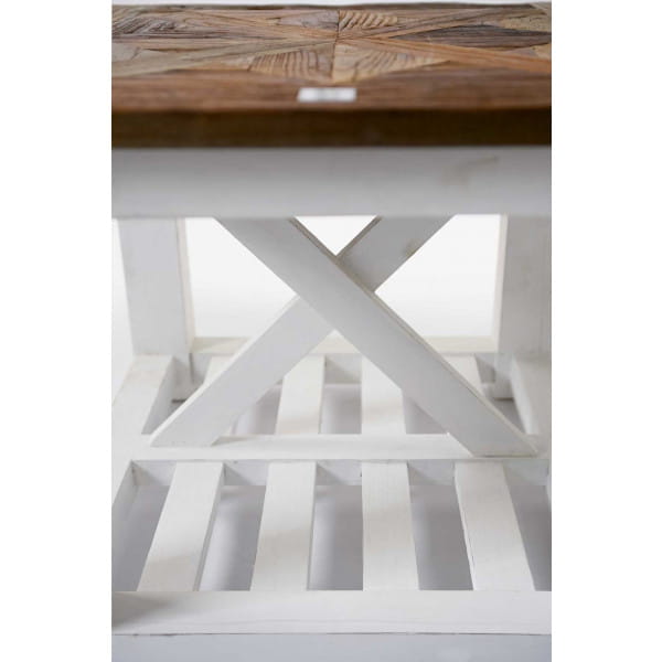 Stoliki z serii Chateau są kolekcją wyjątkową. Drewniany blat inspirowany jest zabytkowymi podłogami występującymi w starych zamkach we Francji. Stolik cudownie wpasuje się w styl Hampton (niewymuszona elegancja) oraz styl Cottage. Dostępny jest w wielu różnych kształtach i rozmiarach, od małych i kwadratowych po duże i podłużne.