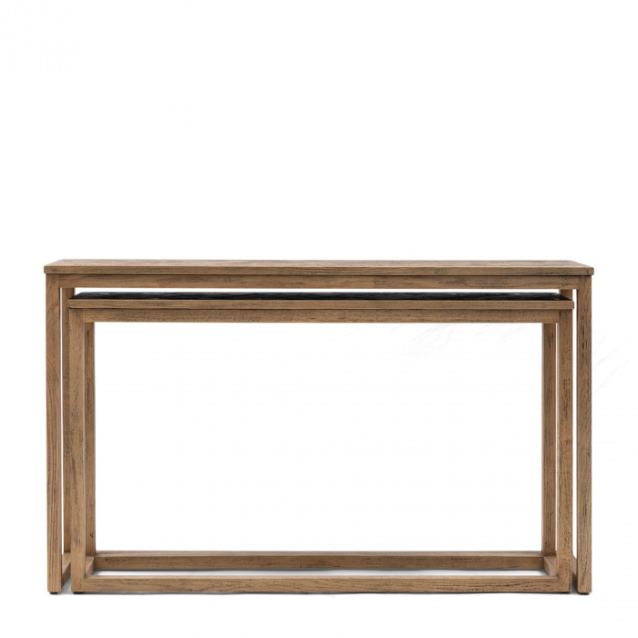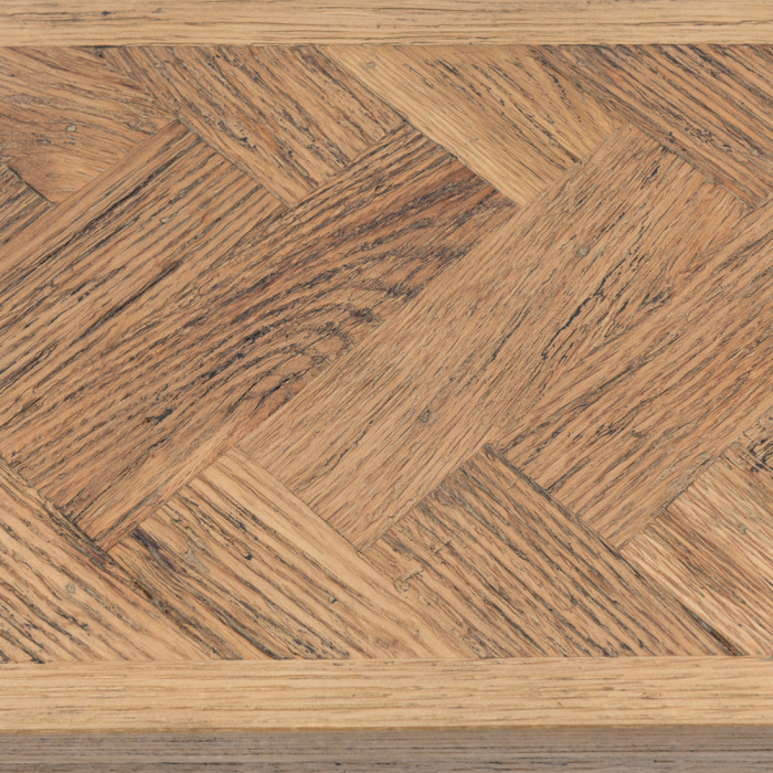 Te dwa stoliki boczne można używać osobno lub razem, w zależności od potrzeb aranżacji wnętrza. Wykonane z dębu, charakteryzują się pięknym wzorem w jodełkę, który nadaje im elegancki wygląd. Niezależnie od tego, czy ustawisz je w przedpokoju, czy salonie, stoliki te stanowią stylową podstawę dekoracji i dopełniają przestrzeń.
