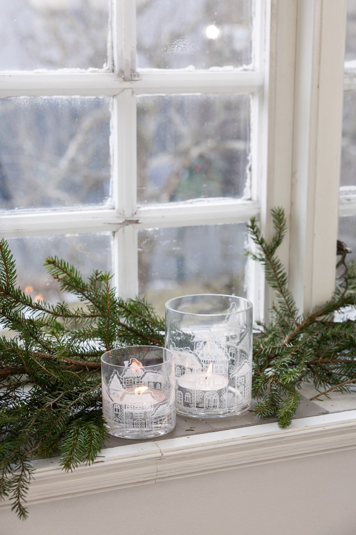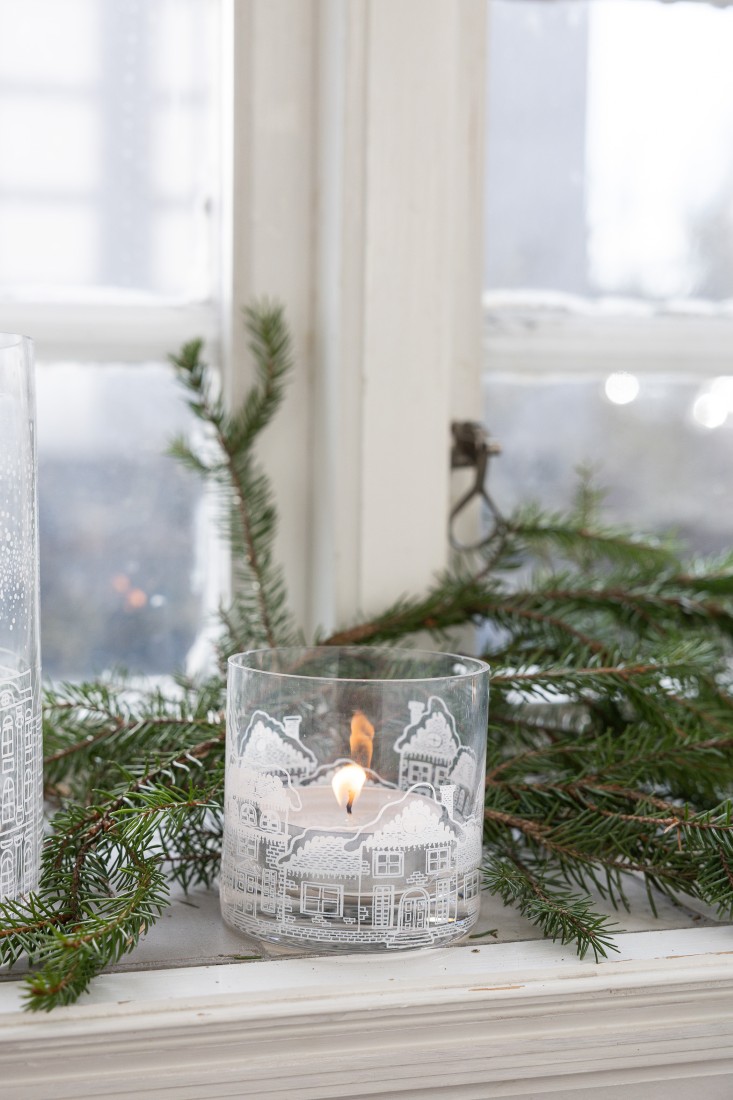 Ten świecznik z subtelnym, zimowym wzorem otula wnętrze ciepłym i nastrojowym blaskiem.