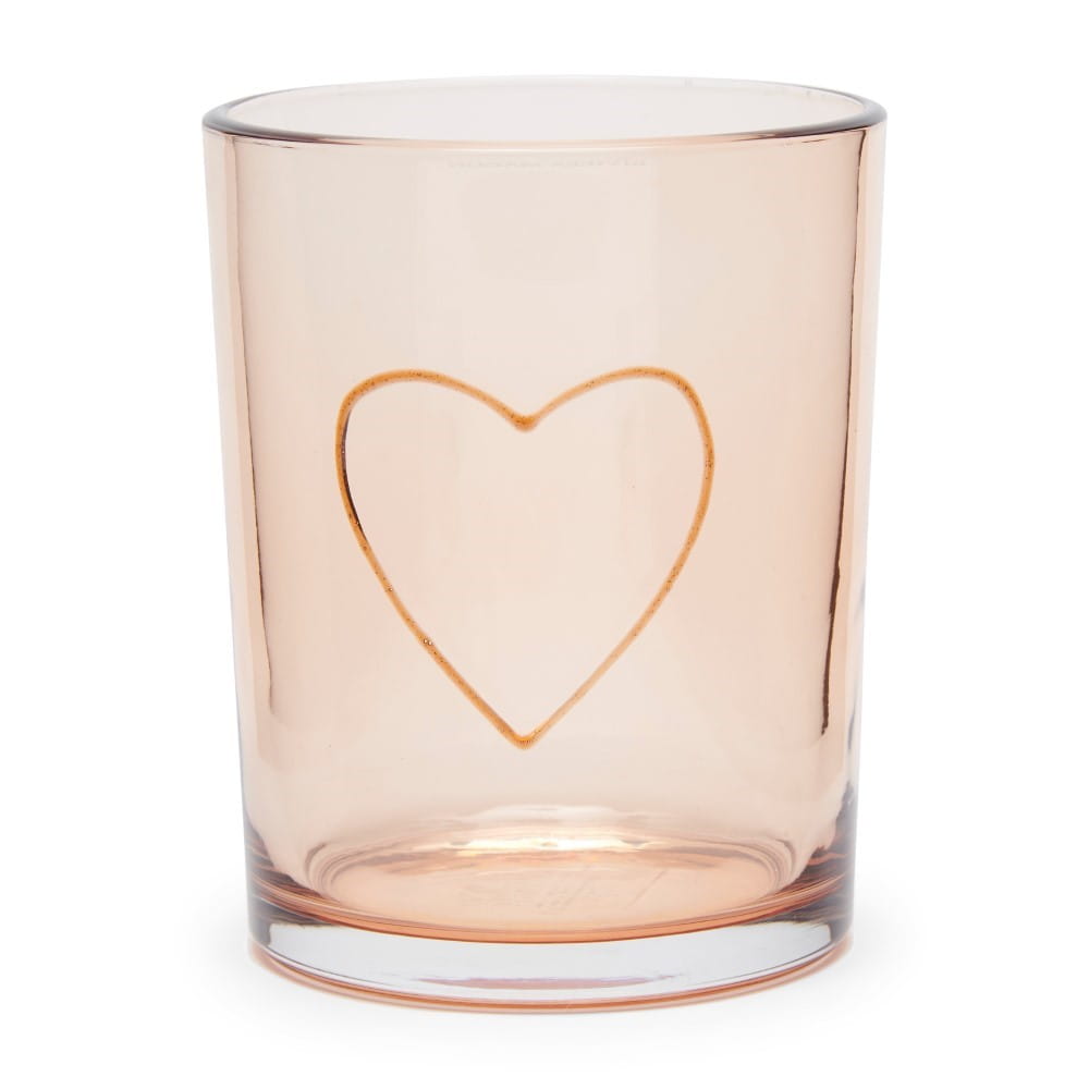 Jasnoróżowe szkło ma narysowane serce z bardzo cienką wypukłością z przodu.