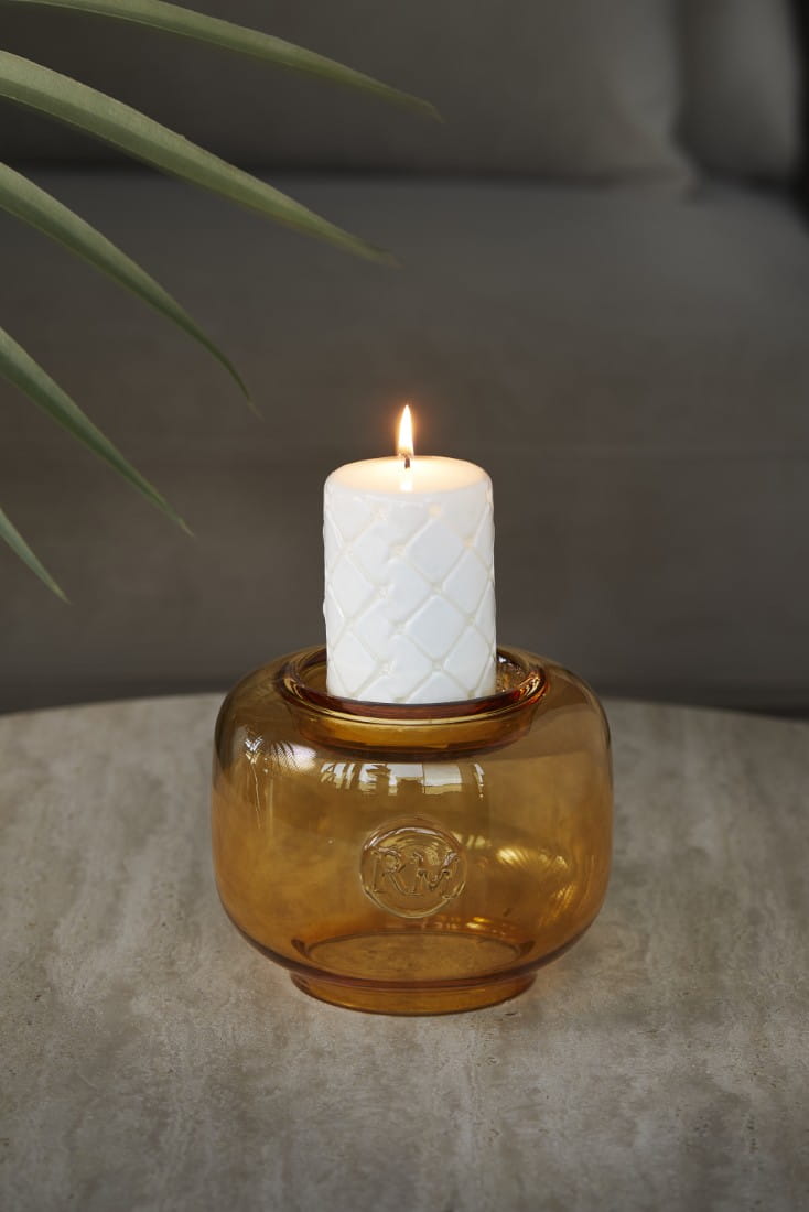 Dzięki wypukłemu kształtowi i półprzezroczystemu brązowemu odcieniowi ten świecznik tworzy elegancki wygląd.