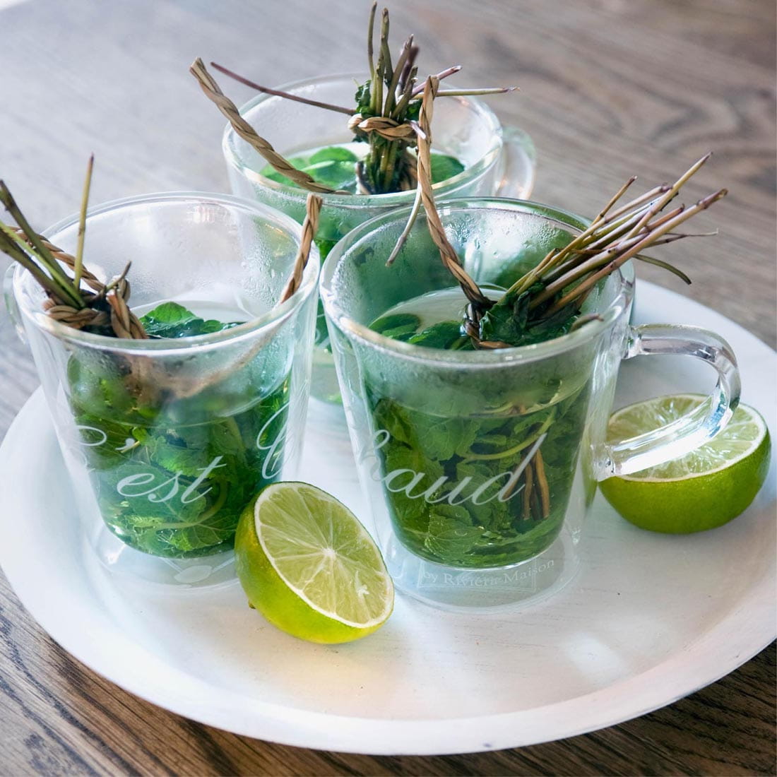 C'est Chaud lub „jest gorąco” odnosi się do tych zabawnych szklanych filiżanek do herbaty / kawy