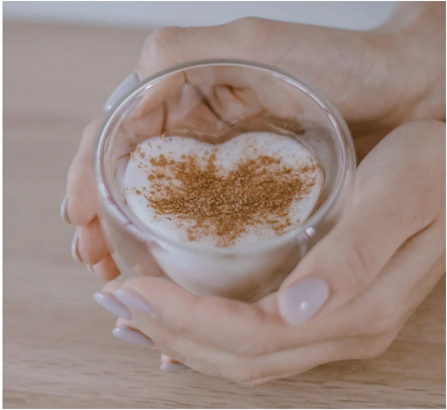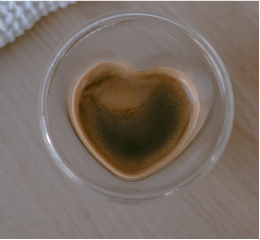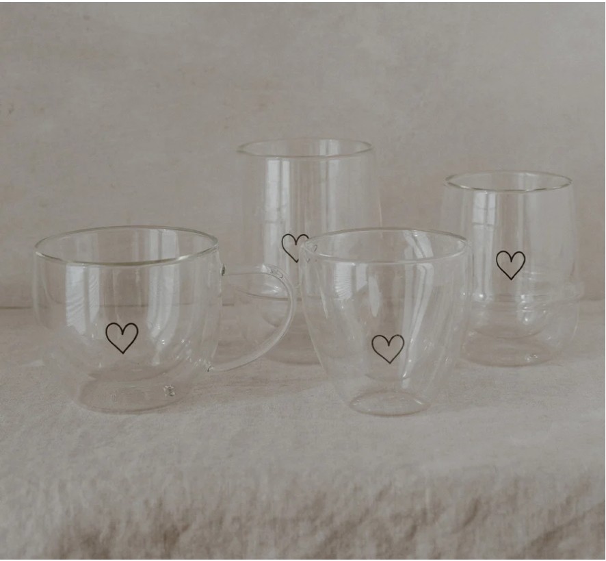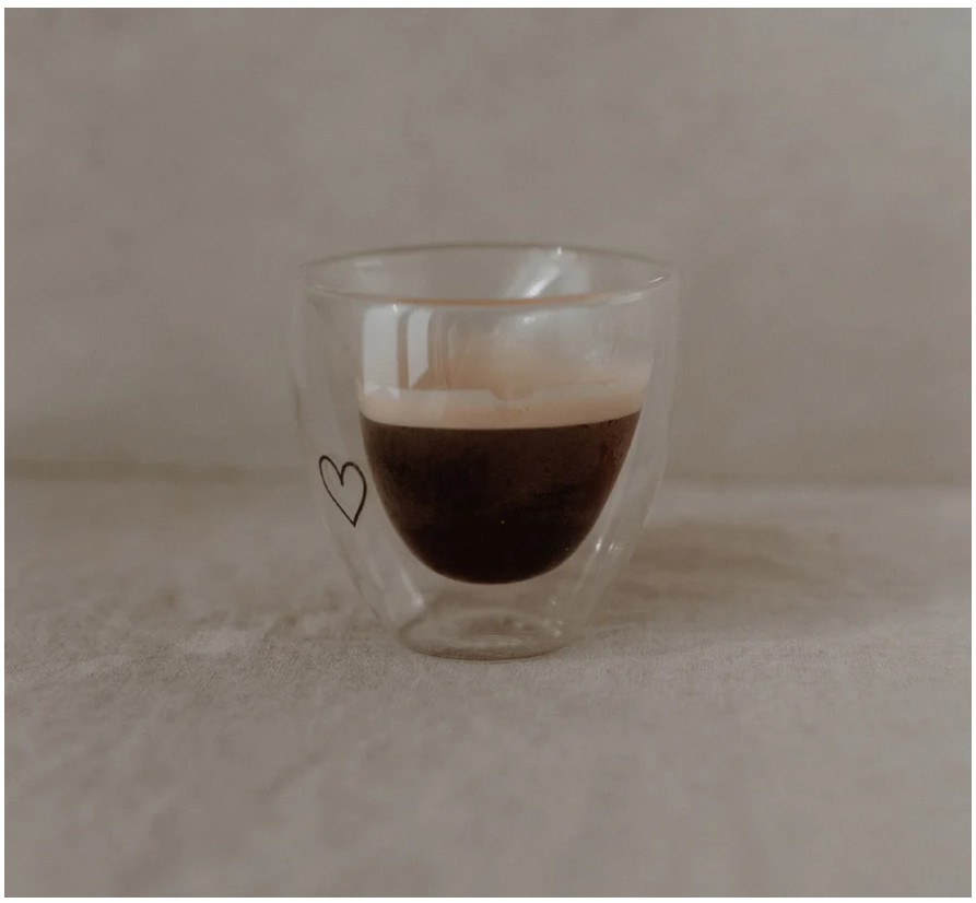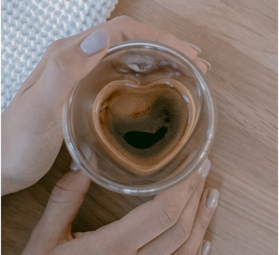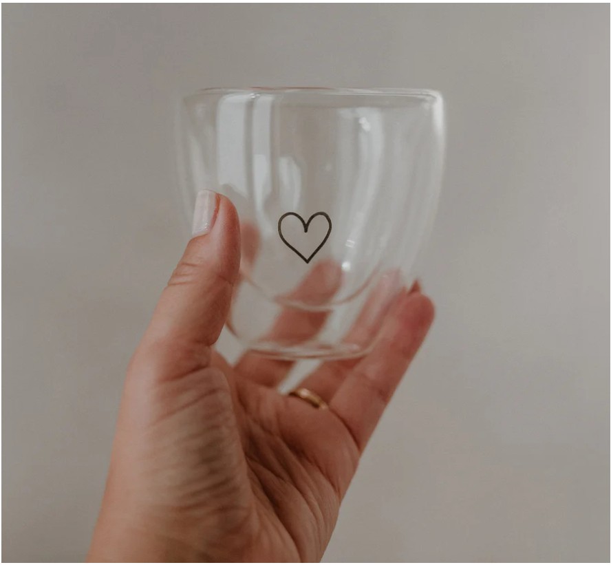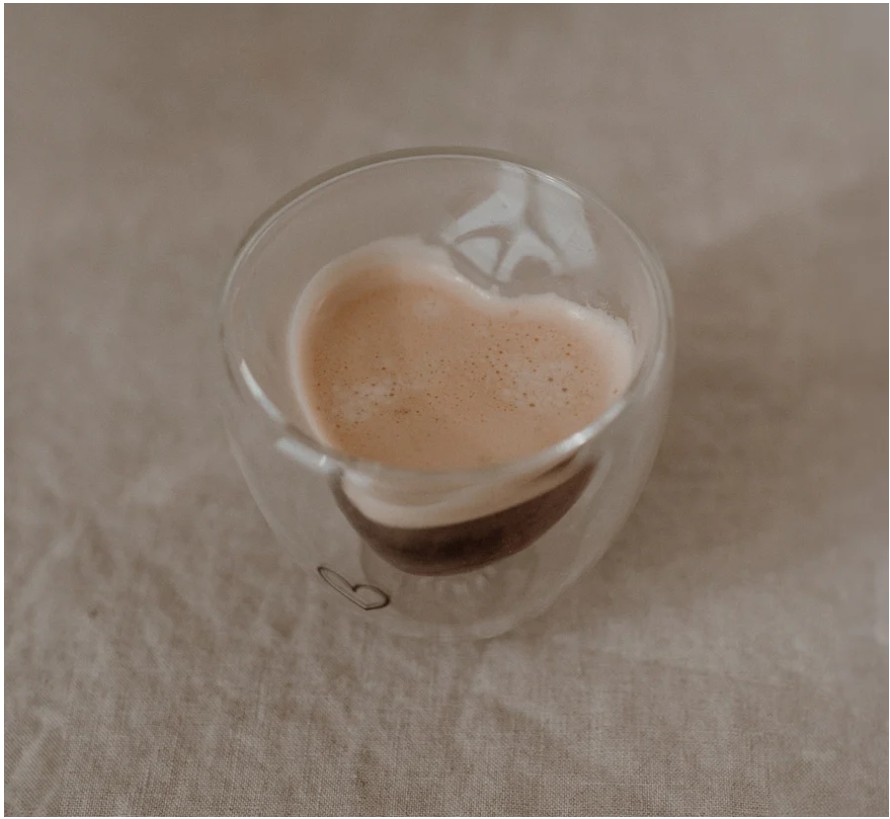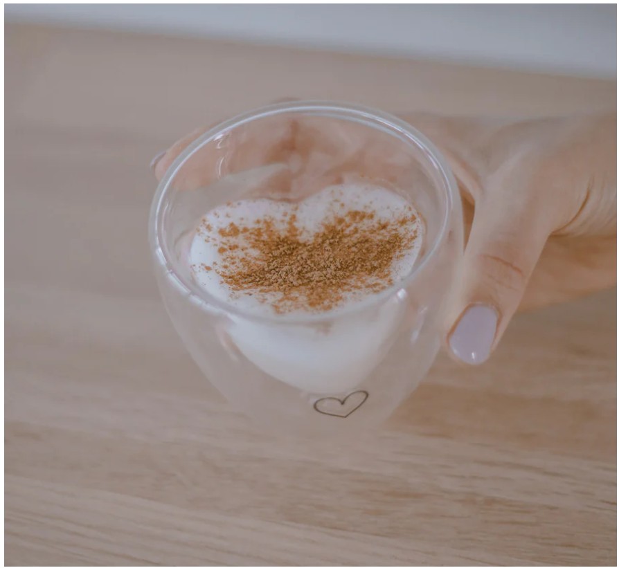 Stylowa szklanka o podwójnych ściankach, która nadaje napojom kształt serca.