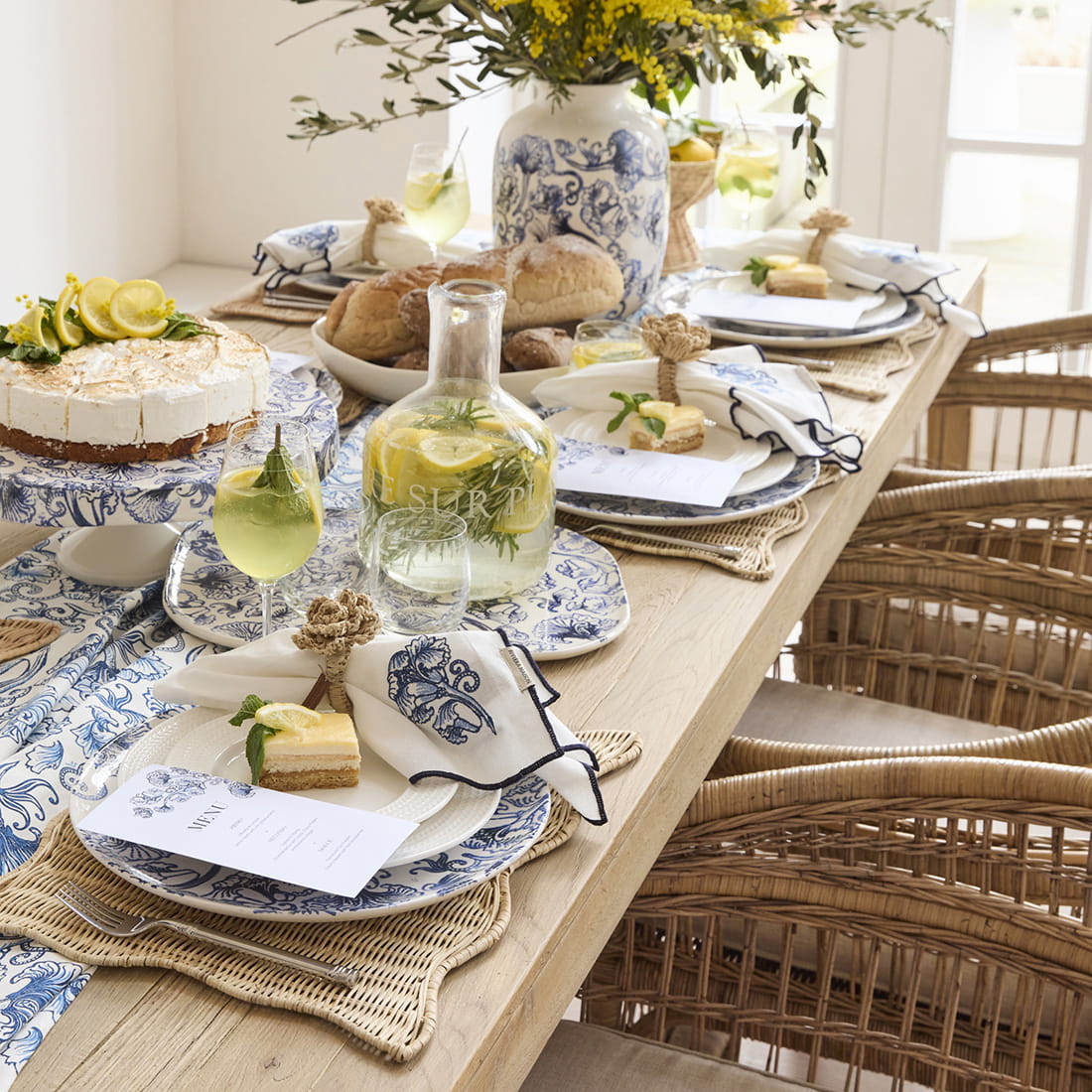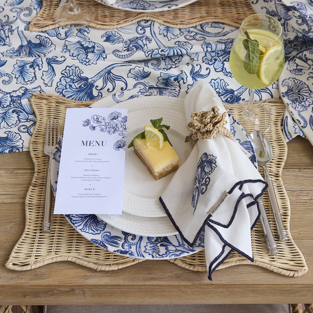 Spokojne otoczenie, pozwalające skupić całą uwagę na pysznym posiłku na talerzu. Talerz świetnie wygląda na pięknie kolorowym obrusie.