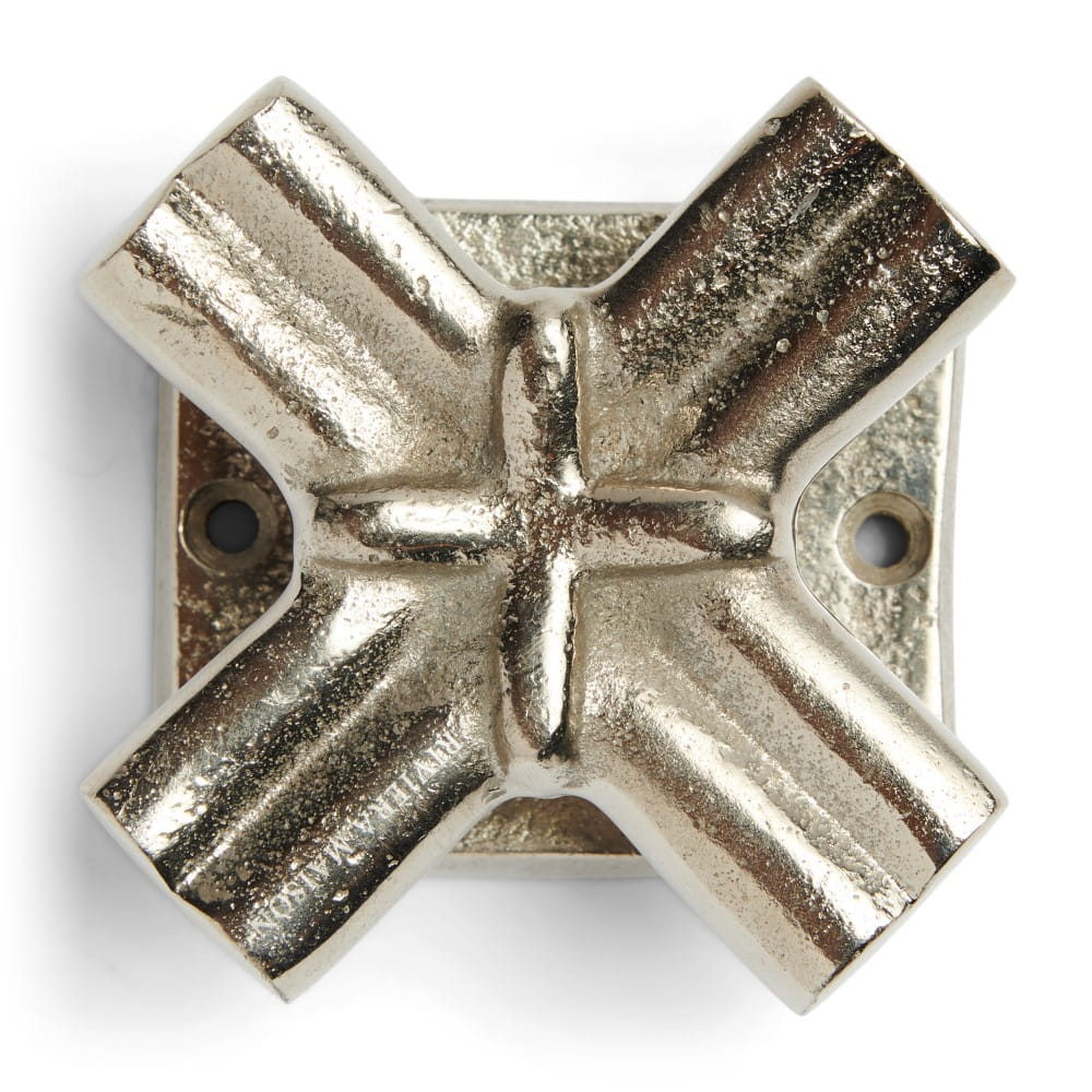 Wykonany ze szczotkowanego aluminium w kształcie krzyża z pięknymi falistymi liniami.