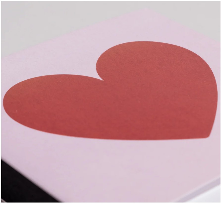 Opakowanie zdobi elegancki motyw z dużym, czerwonym sercem z jednej strony i napisem „make a wish” z drugiej.
