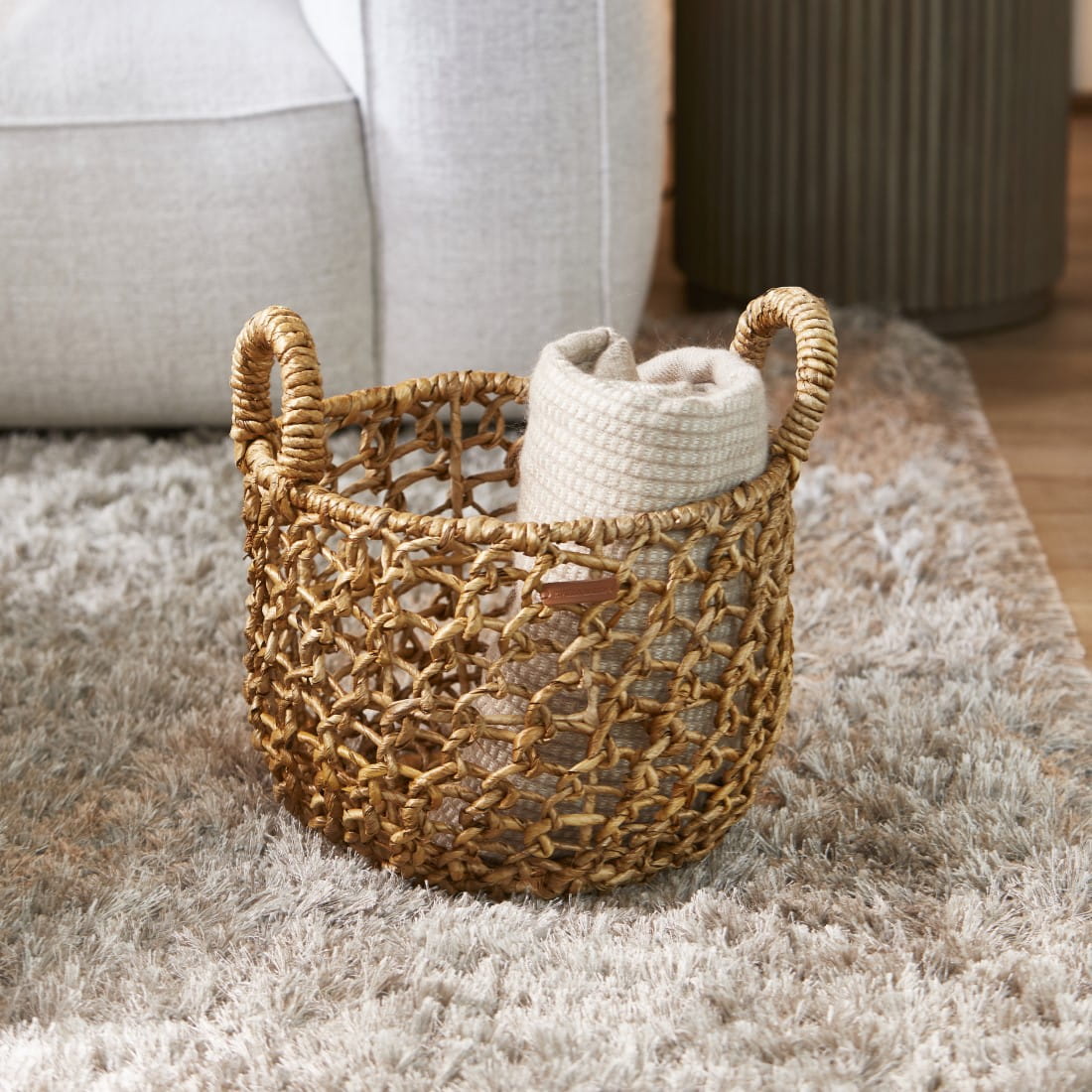 Zestaw tkanych koszy jest idealny do przechowywania i organizowania rzeczy.