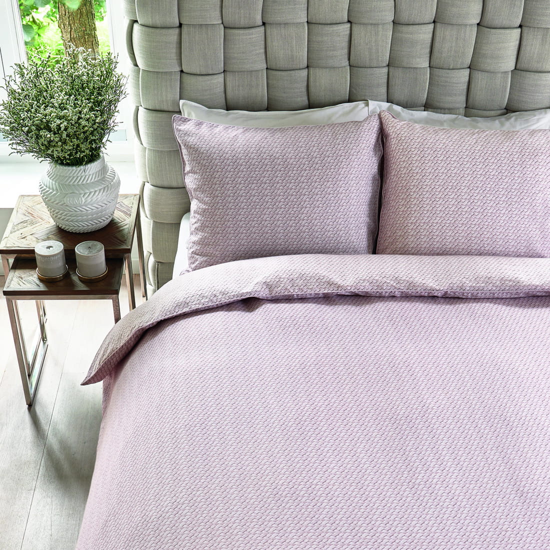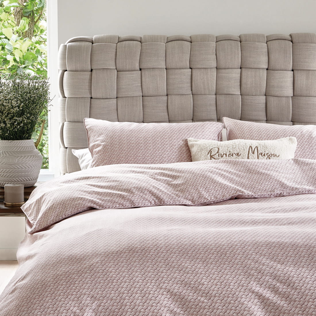 Różowa poszwa na kołdrę Bambu 140x200/220 od Rivièra Maison charakteryzuje się pięknym, subtelnym nadrukiem tkanej bambusa na całej powierzchni. Ta poszwa na kołdrę nada Twojej sypialni stylowy i spokojny wygląd. Szykowne detale lamówki wokół poszewek dodają elegancji.